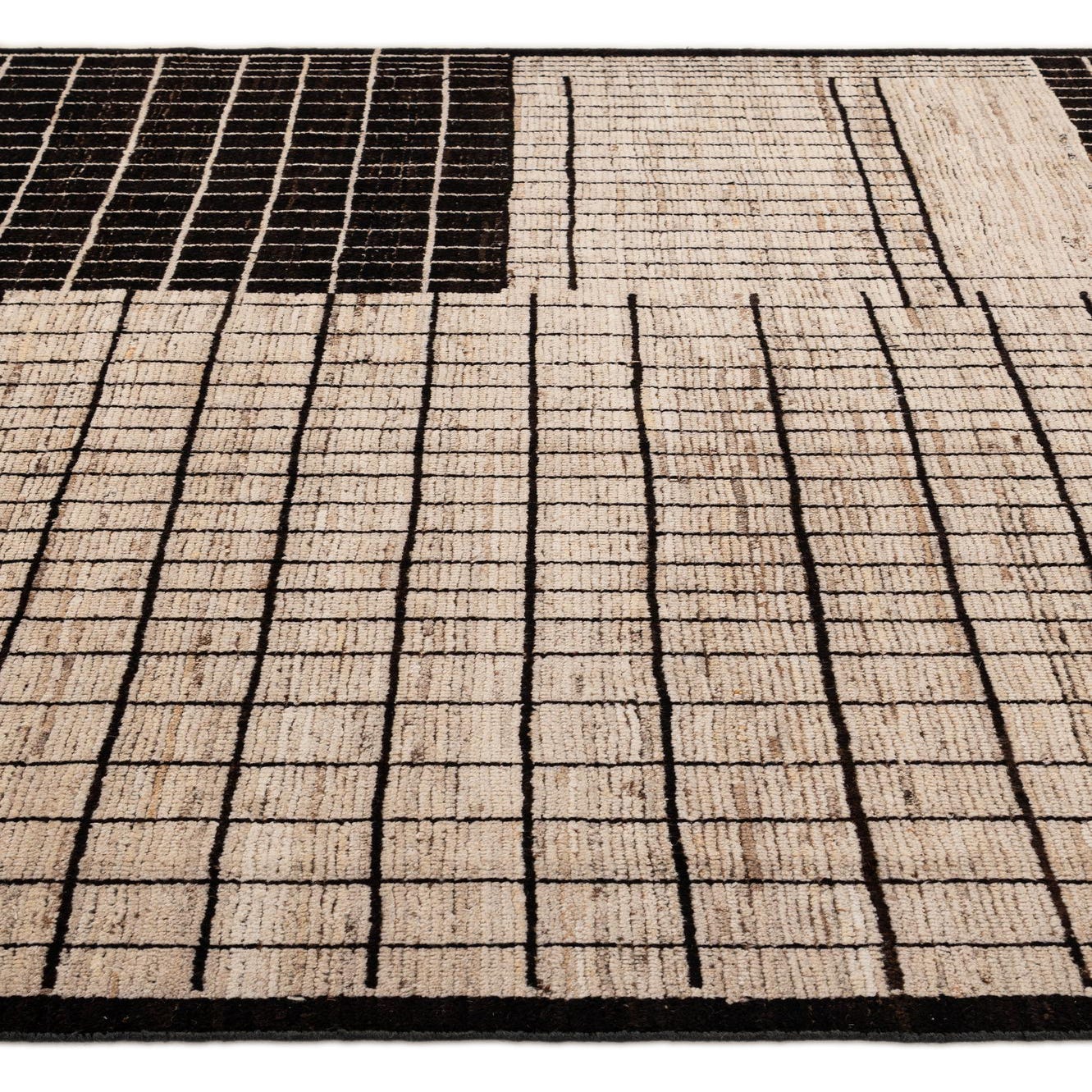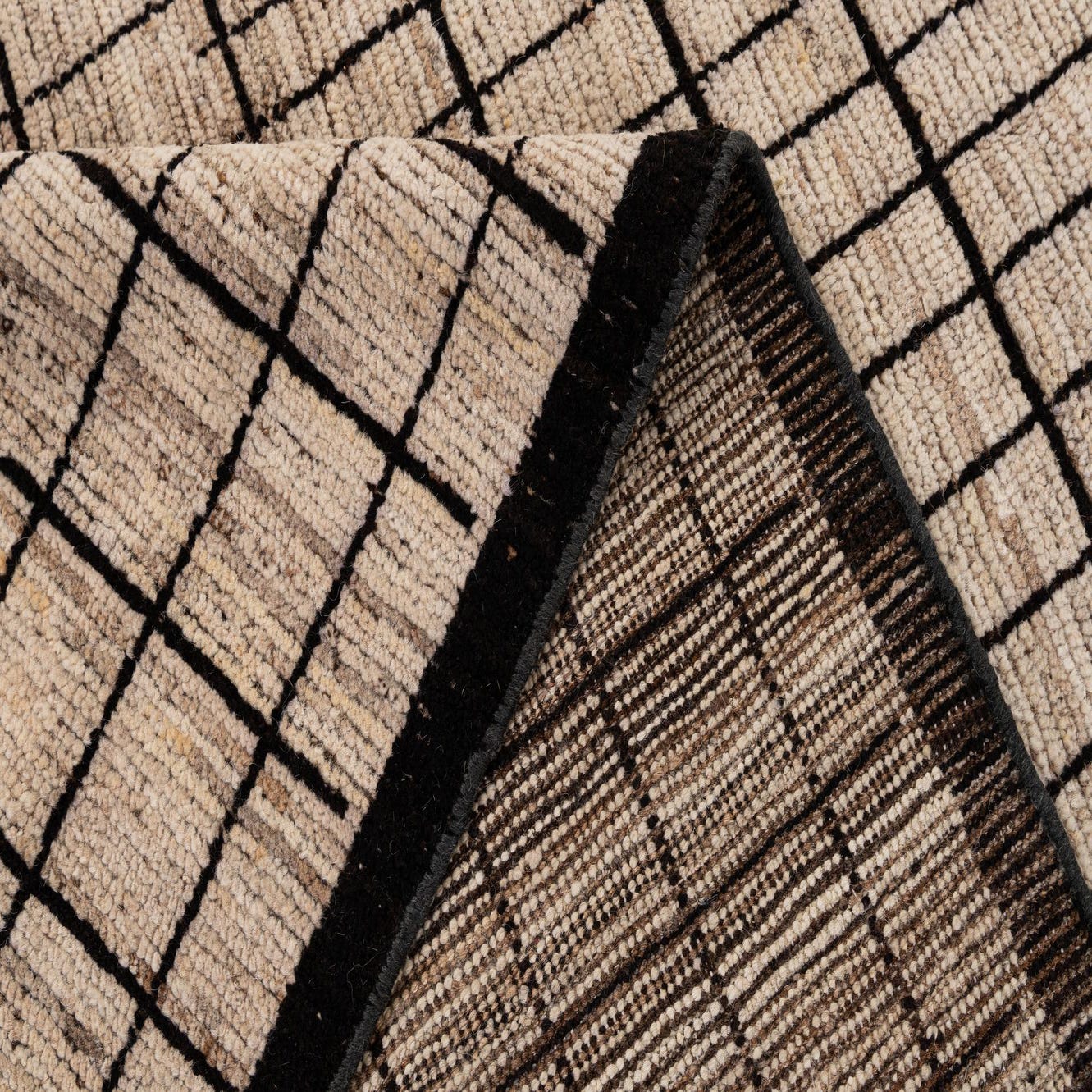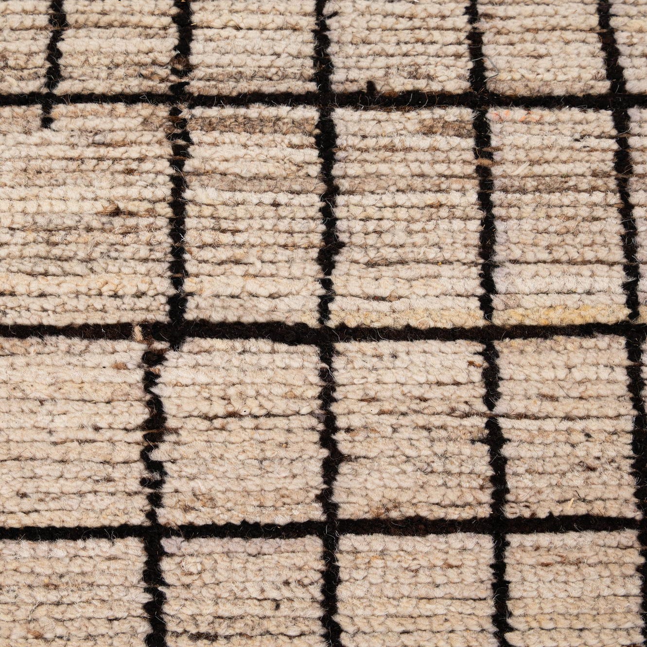 Primary color is Cream. Colors in this rug include: Cream, Black, Brown.