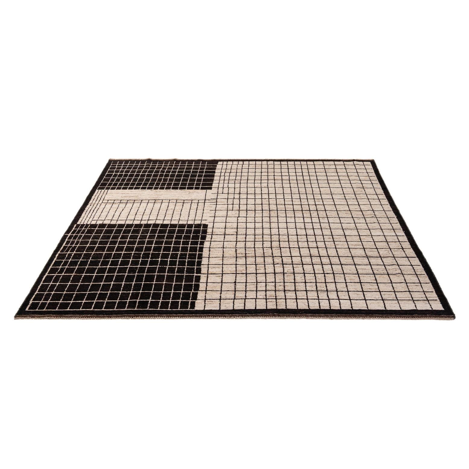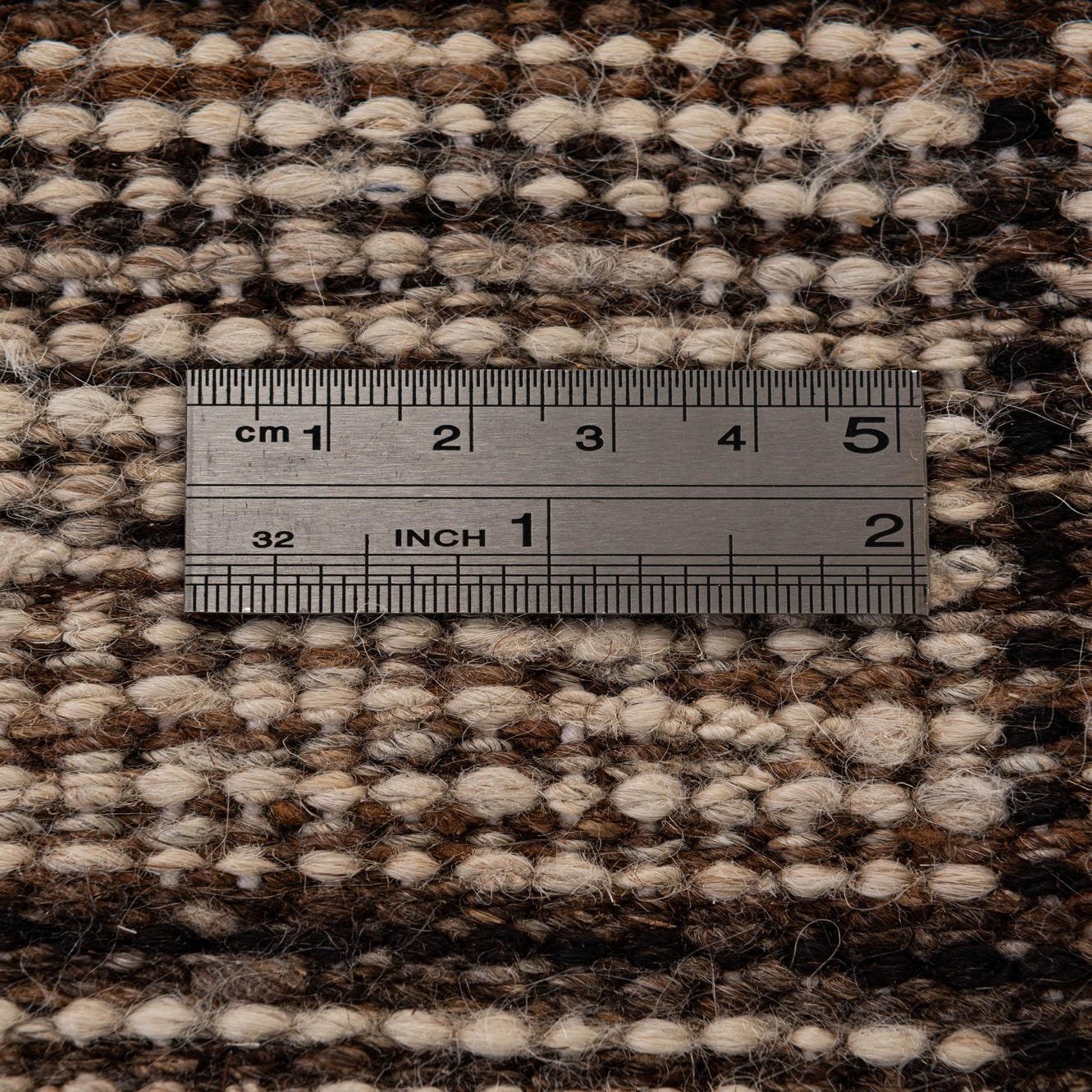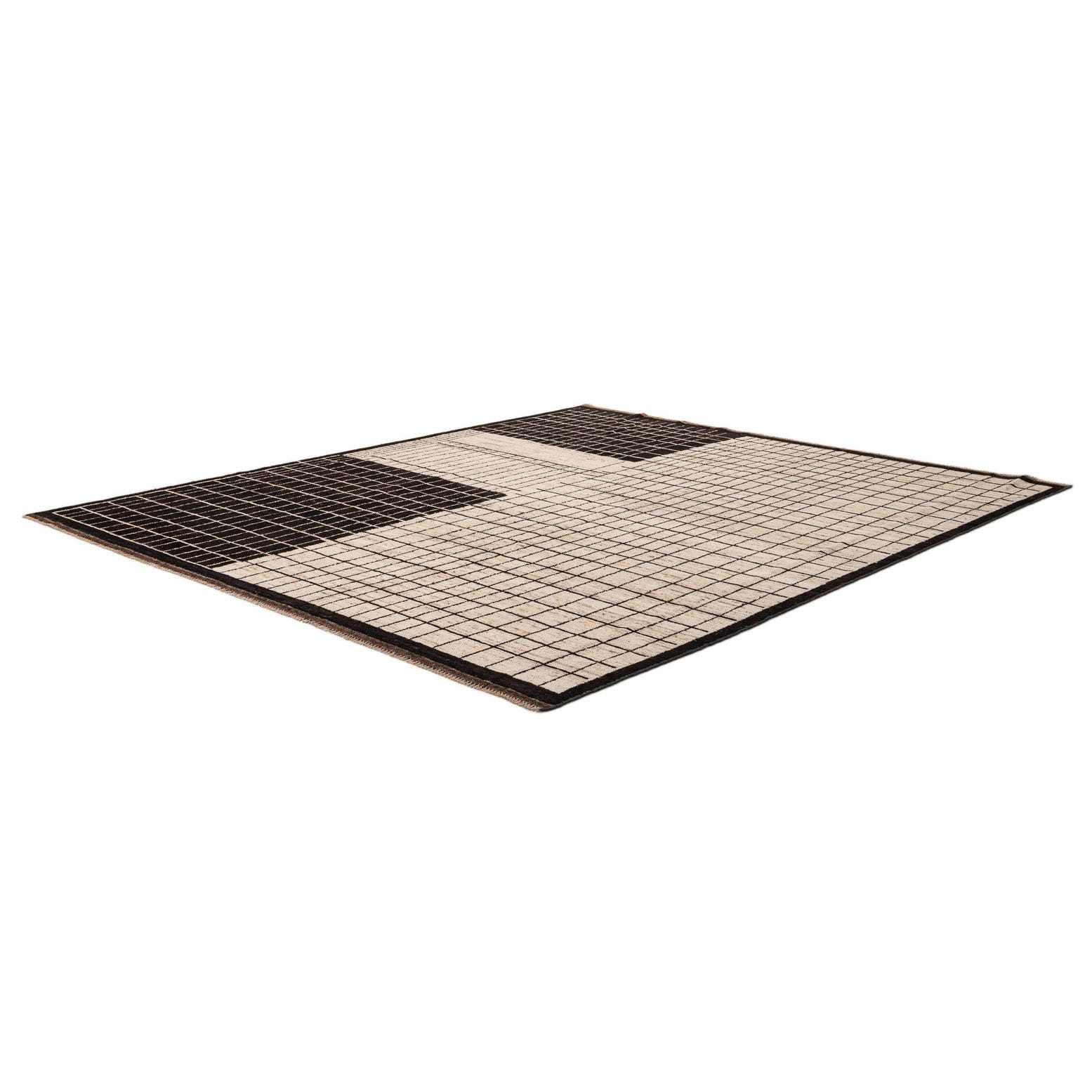 Primary color is Cream. Colors in this rug include: Cream, Black, Brown.