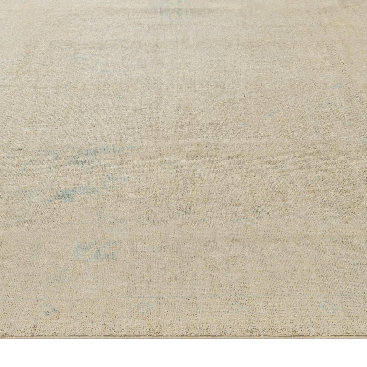 Primary color is Cream. Colors in this rug include: Cream, Beige, Light Blue.