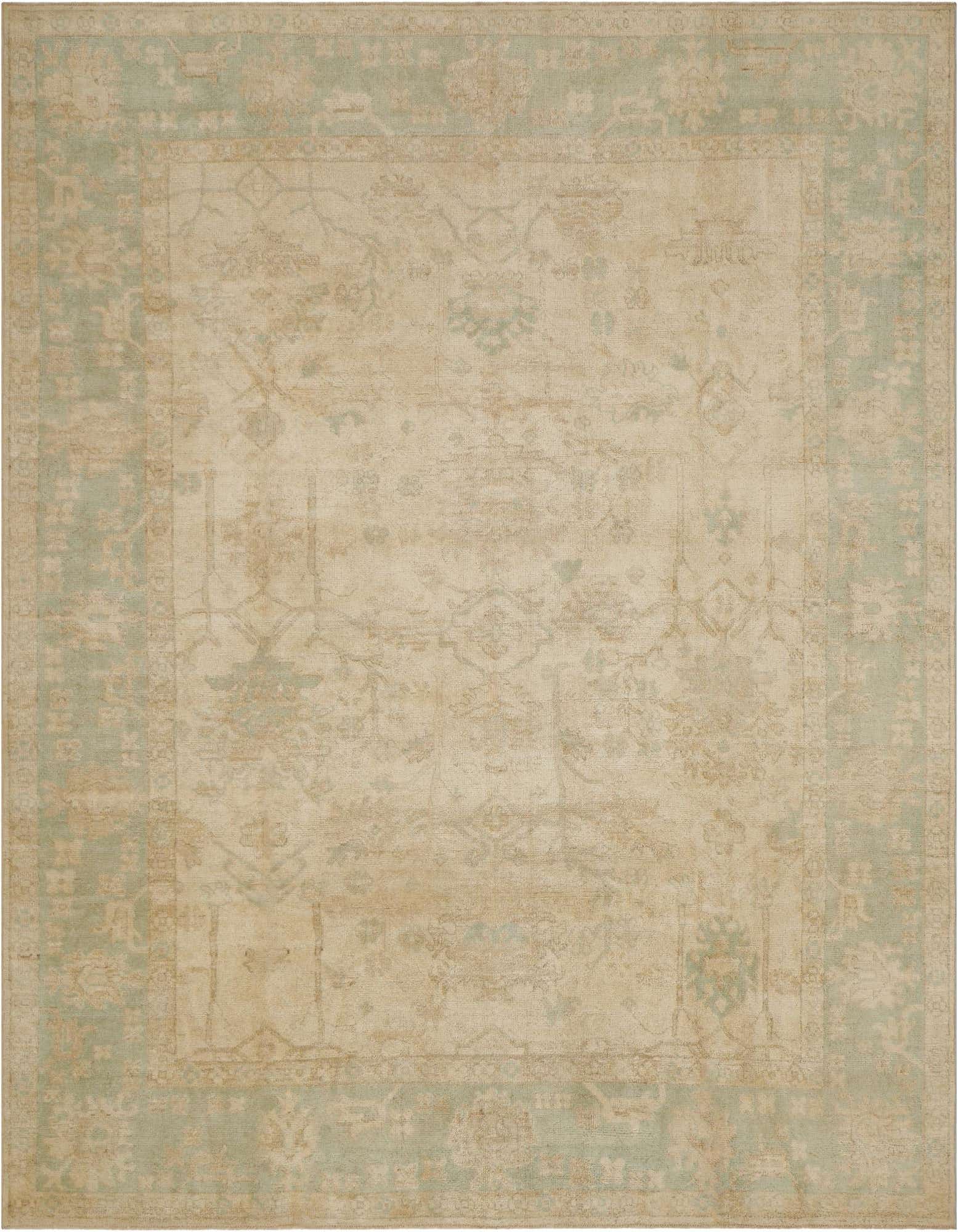 Primary color is Cream. Colors in this rug include: Cream, Beige, Brown, Light Green.