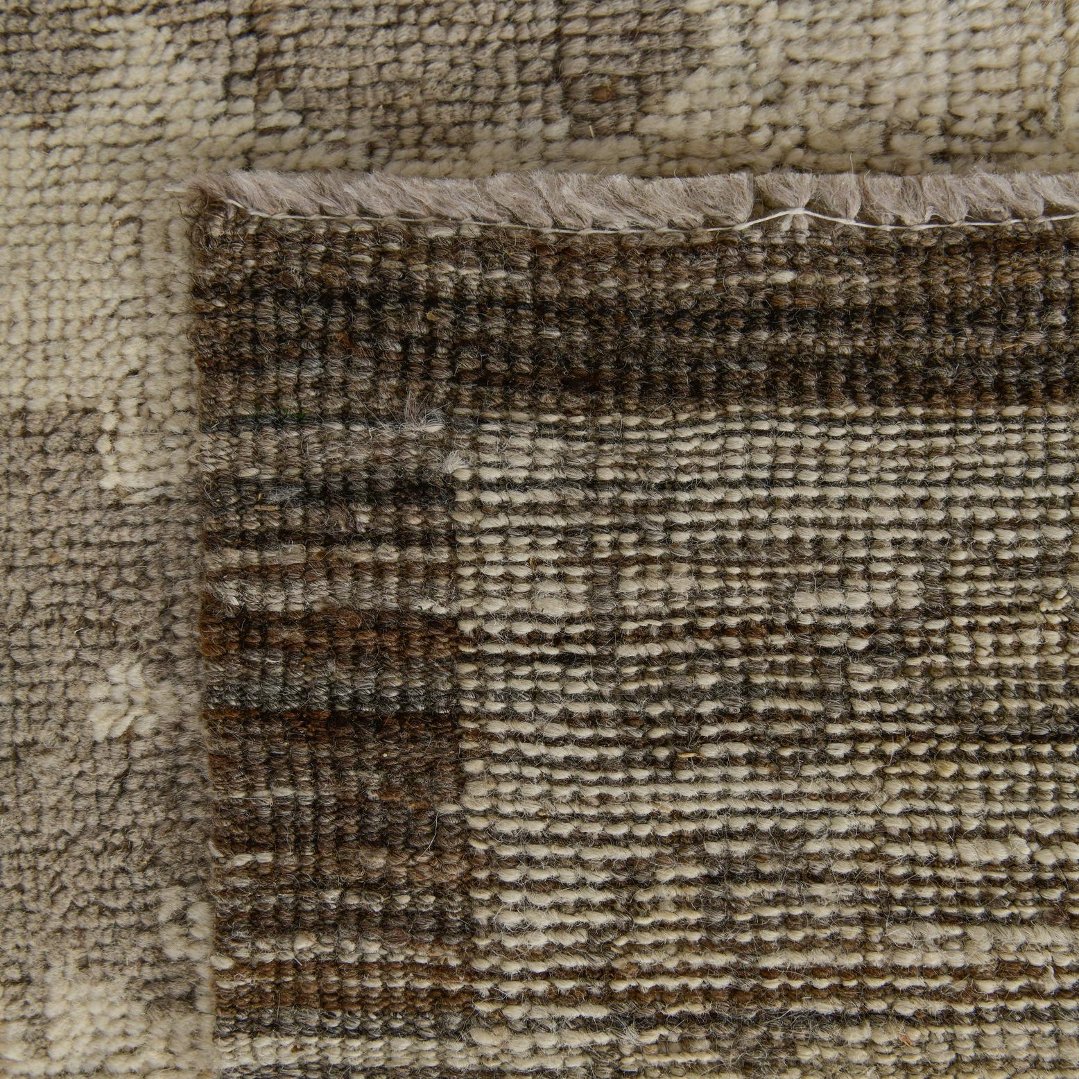 Primary color is Cream. Colors in this rug include: Cream, Brown, Beige.