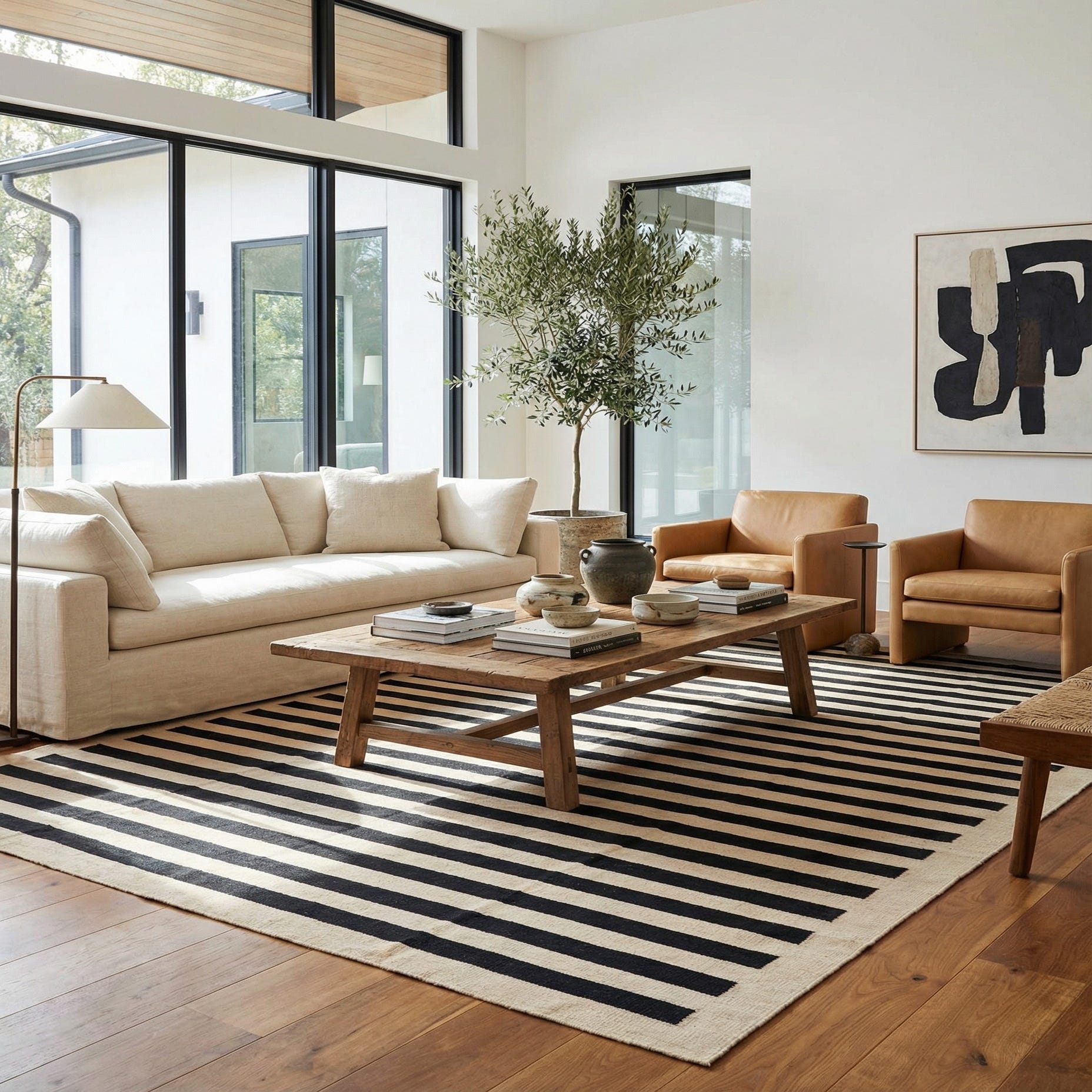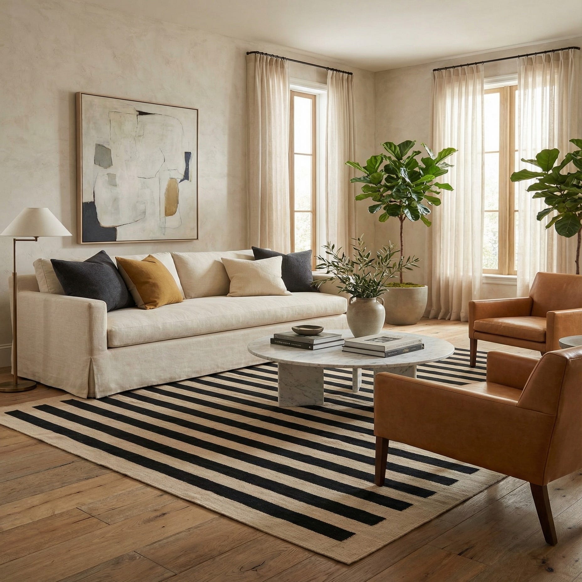 Primary color is Cream. Colors in this rug include: Cream, Black.