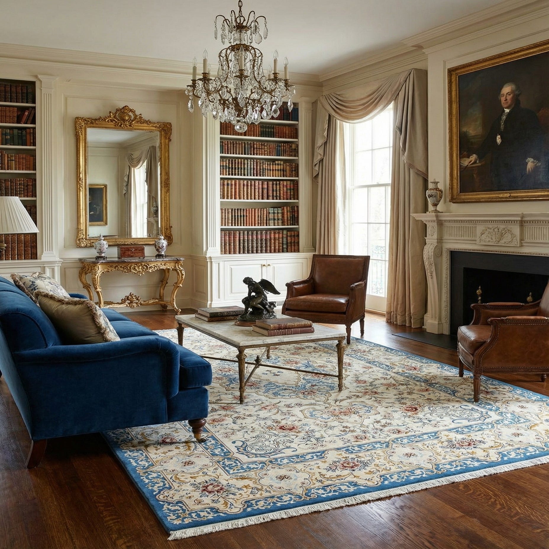 Primary color is Cream. Colors in this rug include: Cream, Cream, Blue, Beige, Orange, Pink, Red, Light Brown, Olive.