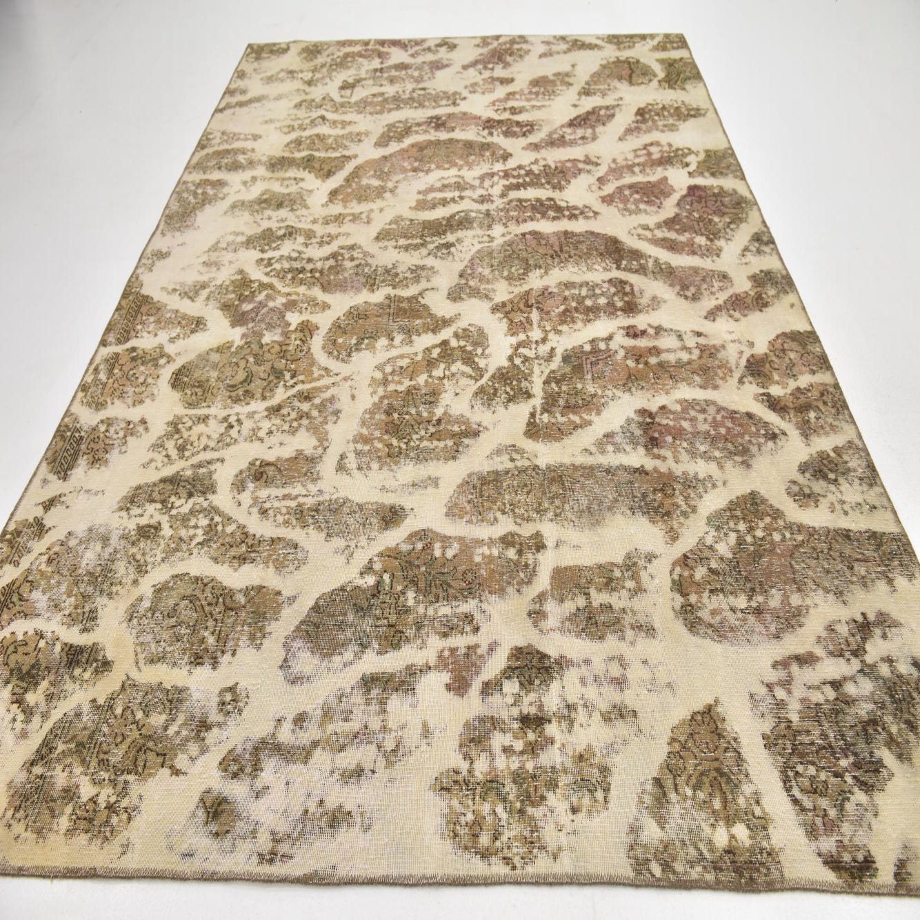 This Persian Ultra Vintage rug is an antique Persian Rug that has been washed, over-dyed, and then shaved down to a low pile. Look at the detail pictures to fully appreciate the uniqueness of this piece.