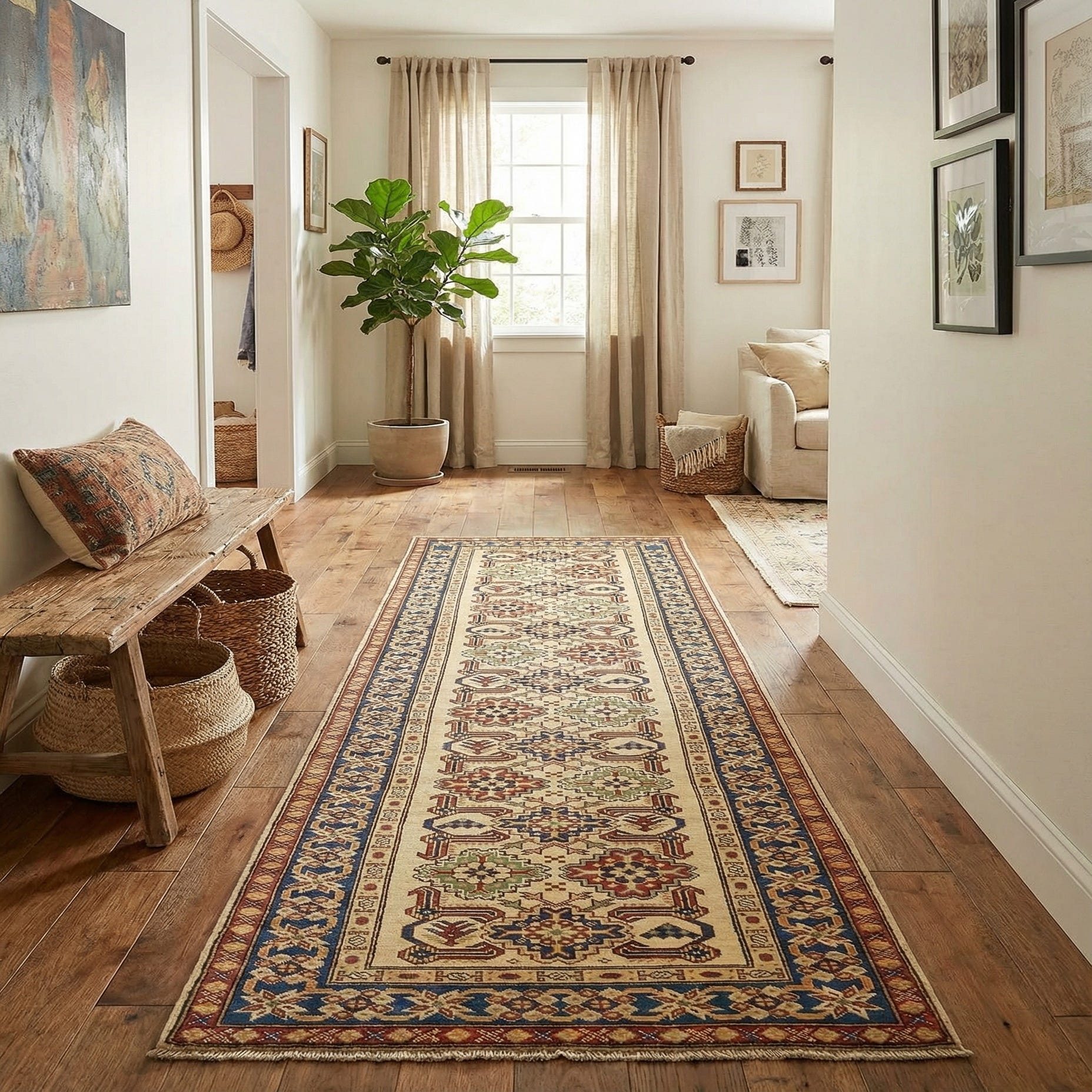2' 9 x 9' 3 Hand Knotted Kazak Runner Rug