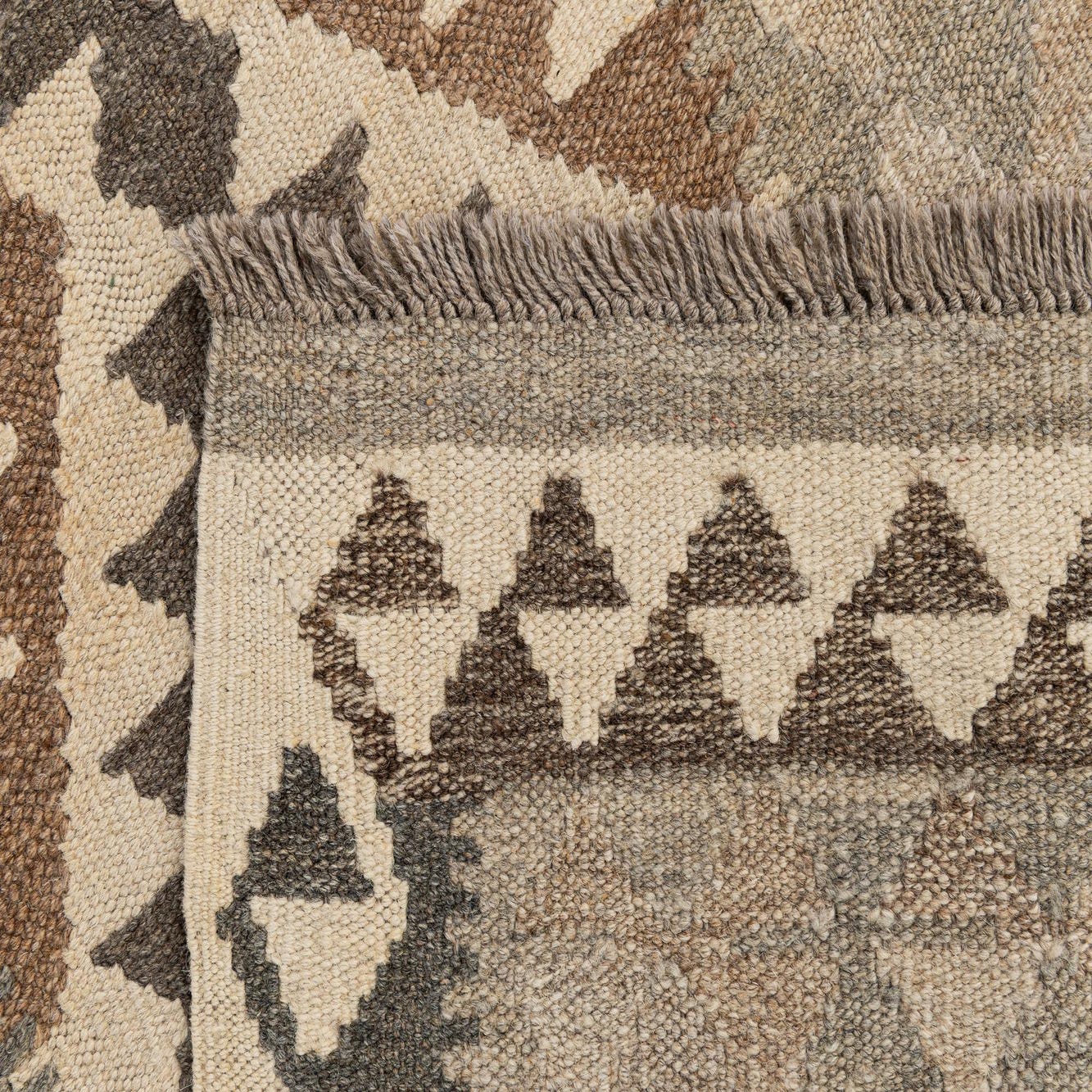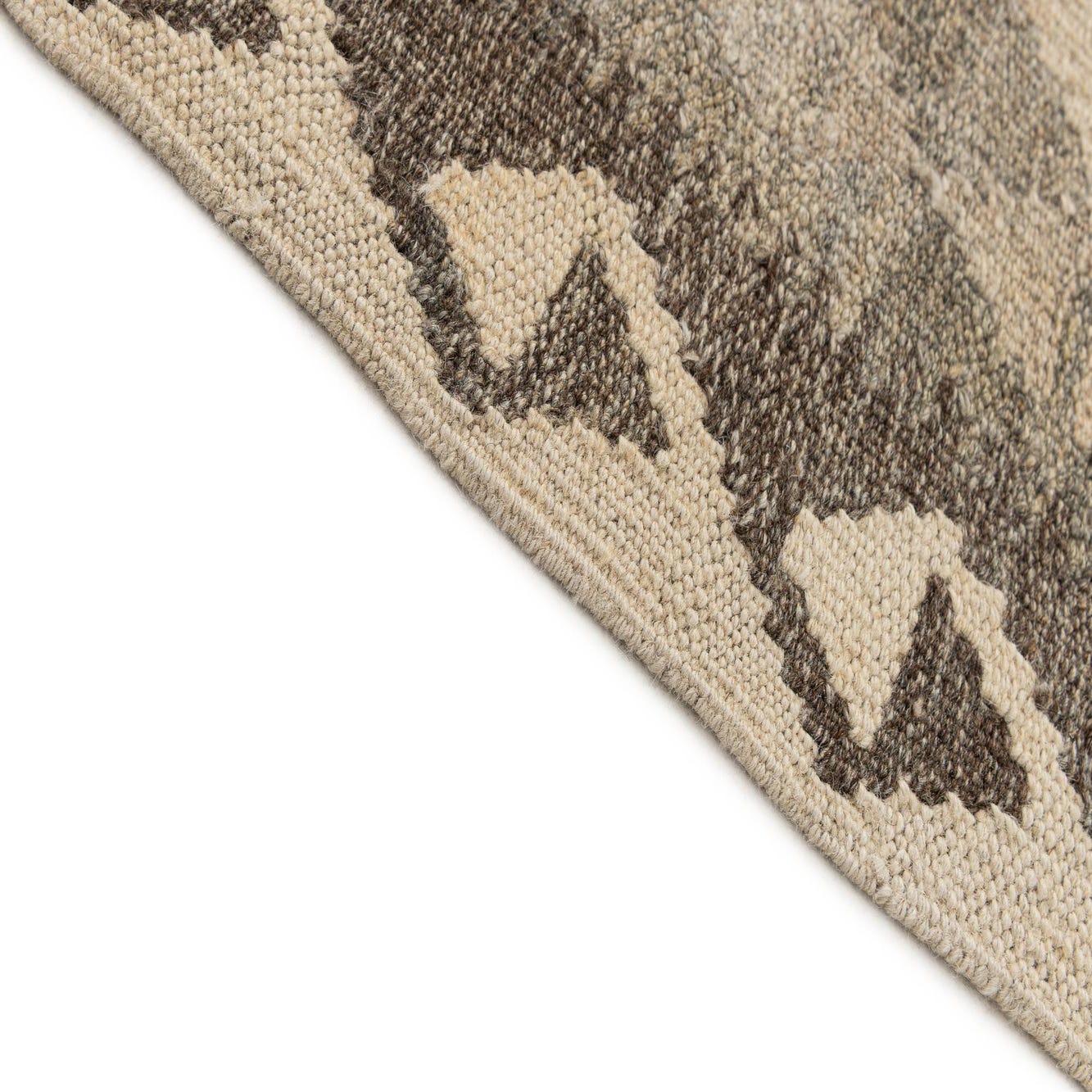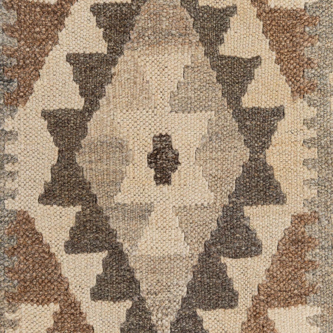 Primary color is Cream. Colors in this rug include: Cream, Brown, Gray.