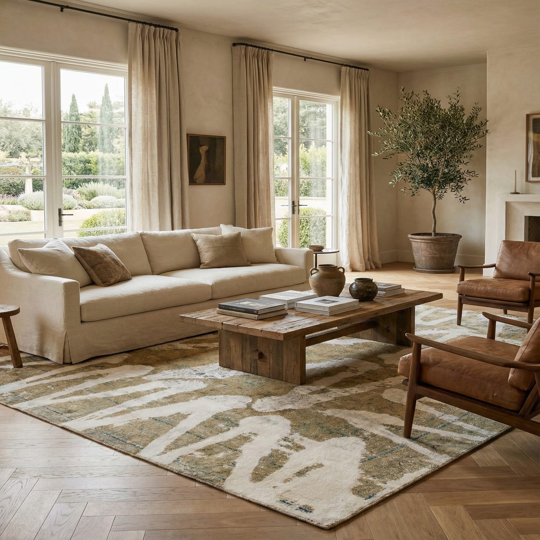 Primary color is Cream. Colors in this rug include: Cream, Beige, Light Brown, Tan, Navy Blue.