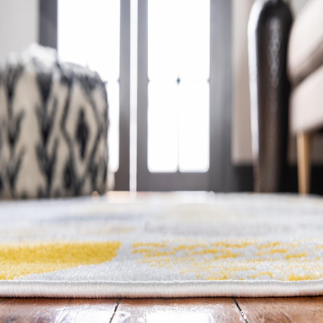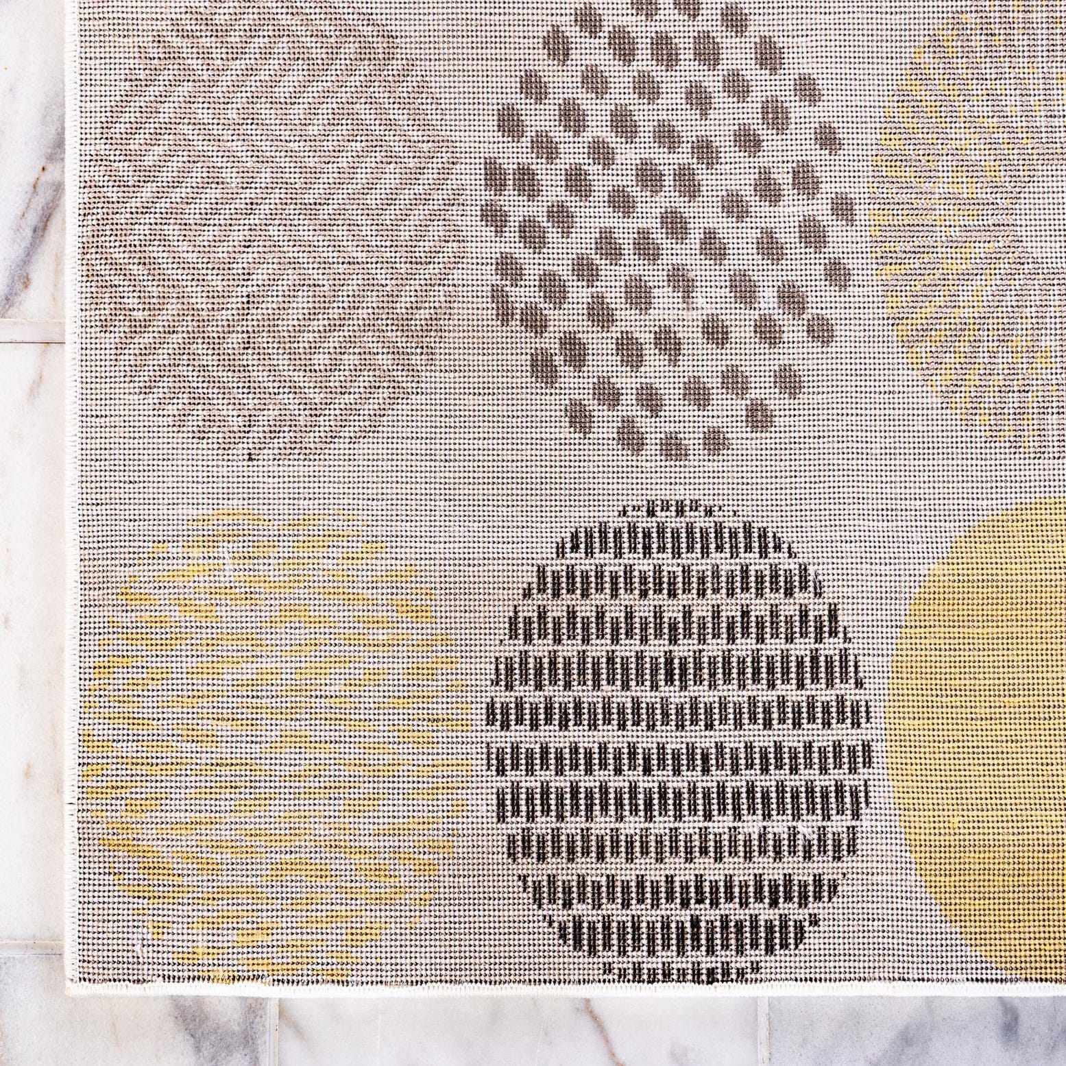 Primary color is Cream. Colors in this rug include: Cream, Black, Gray, Ivory, Light Brown, Yellow.