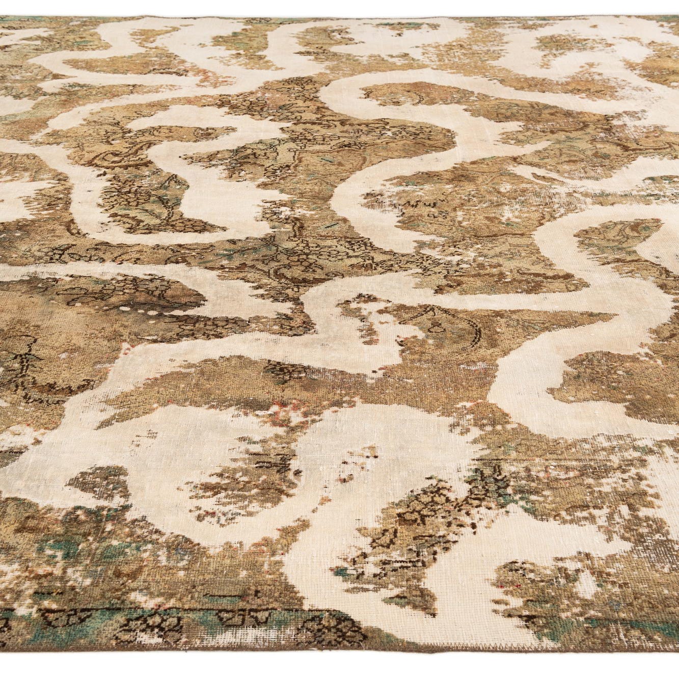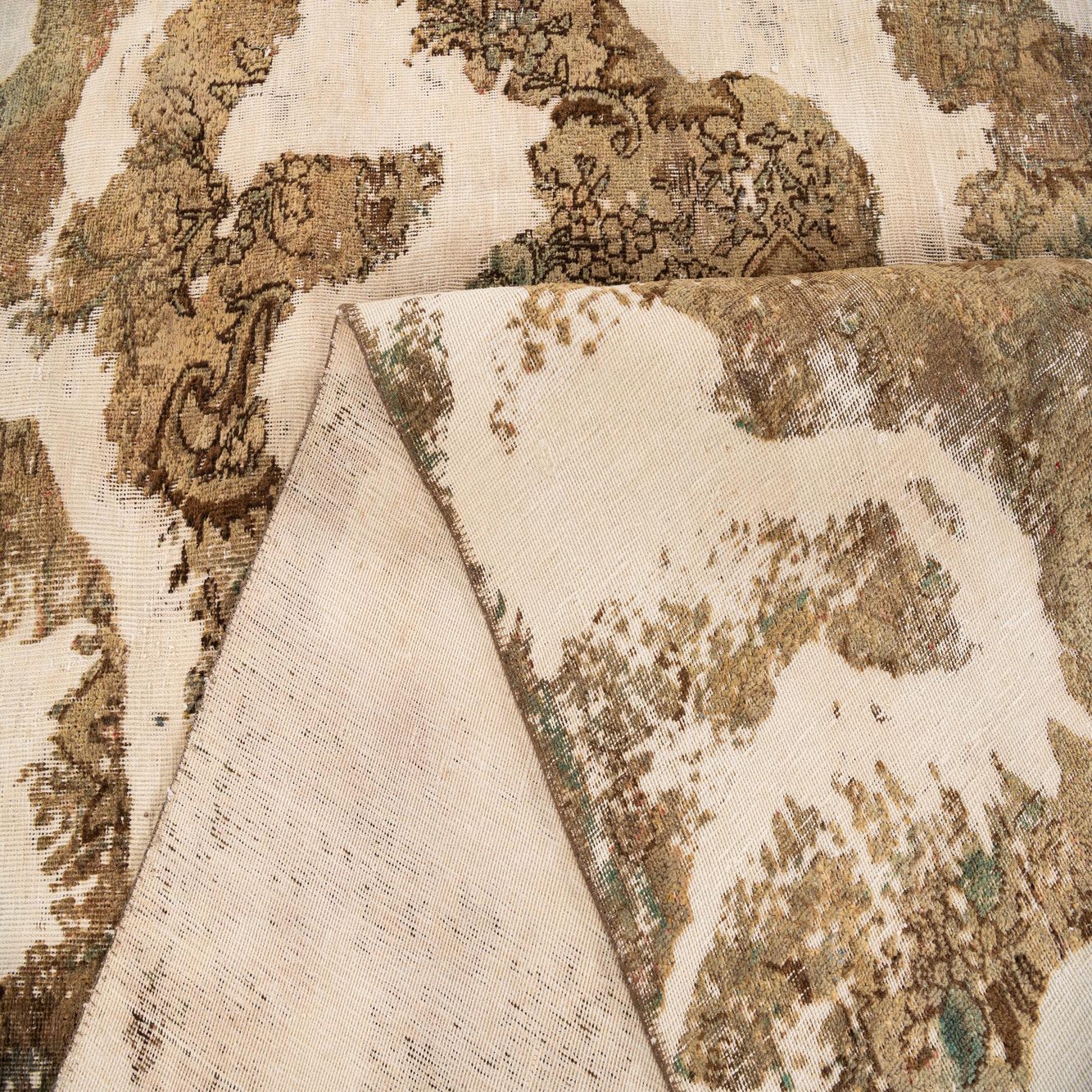 Primary color is Cream. Colors in this rug include: Cream, Beige, Brown, Green, Light Brown, Olive.