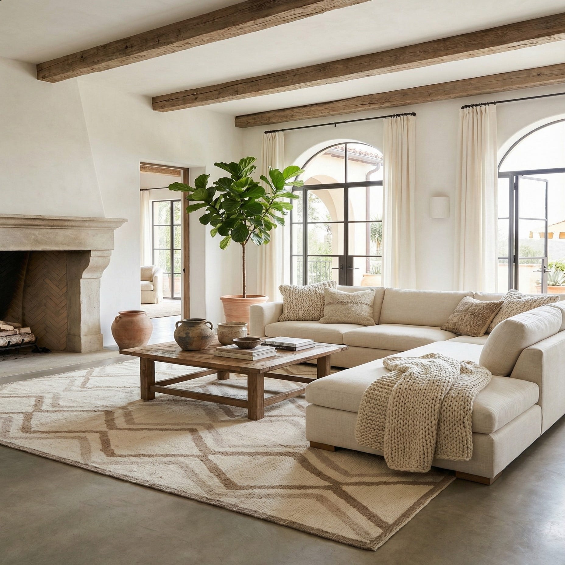 Primary color is Cream. Colors in this rug include: Cream, Rectangle.
