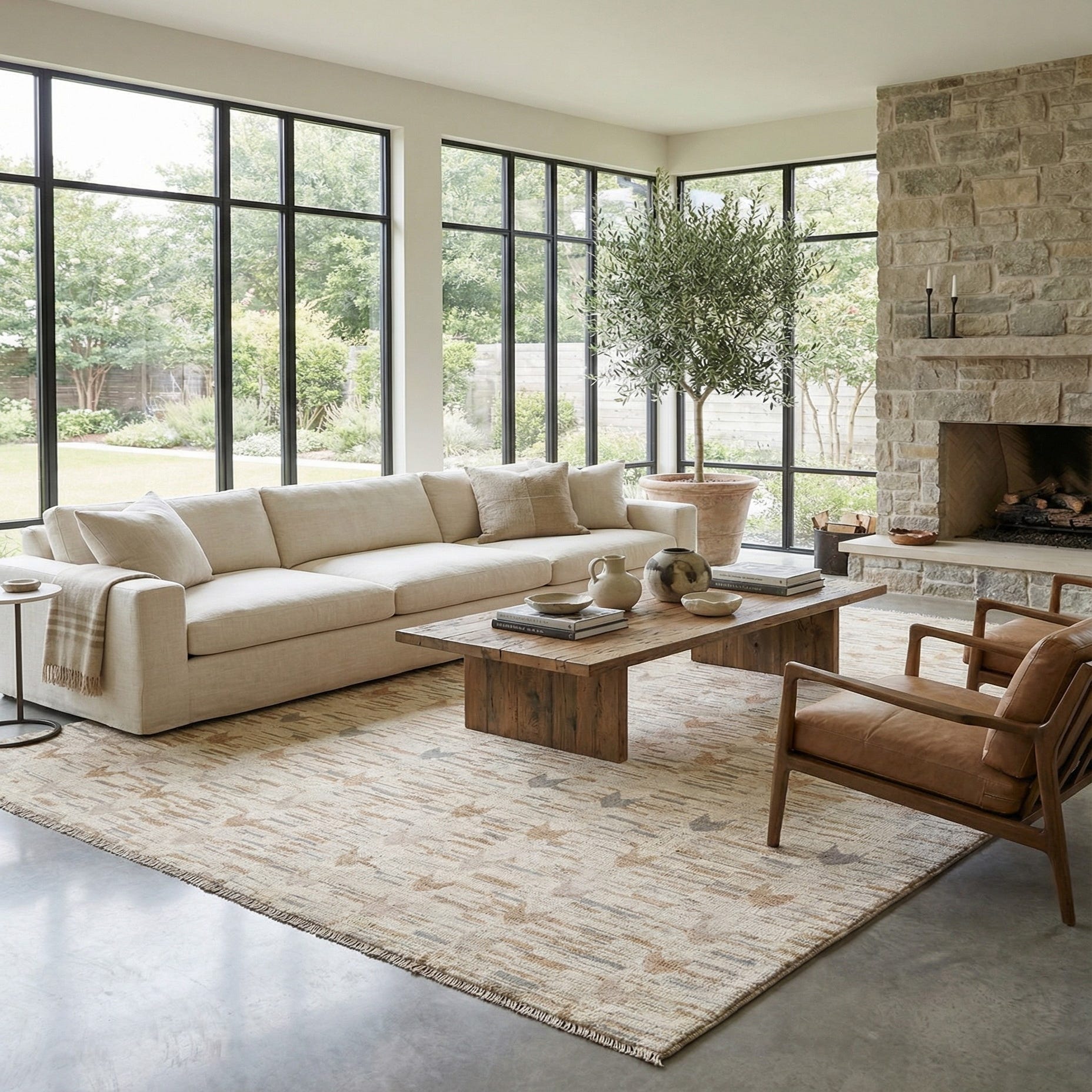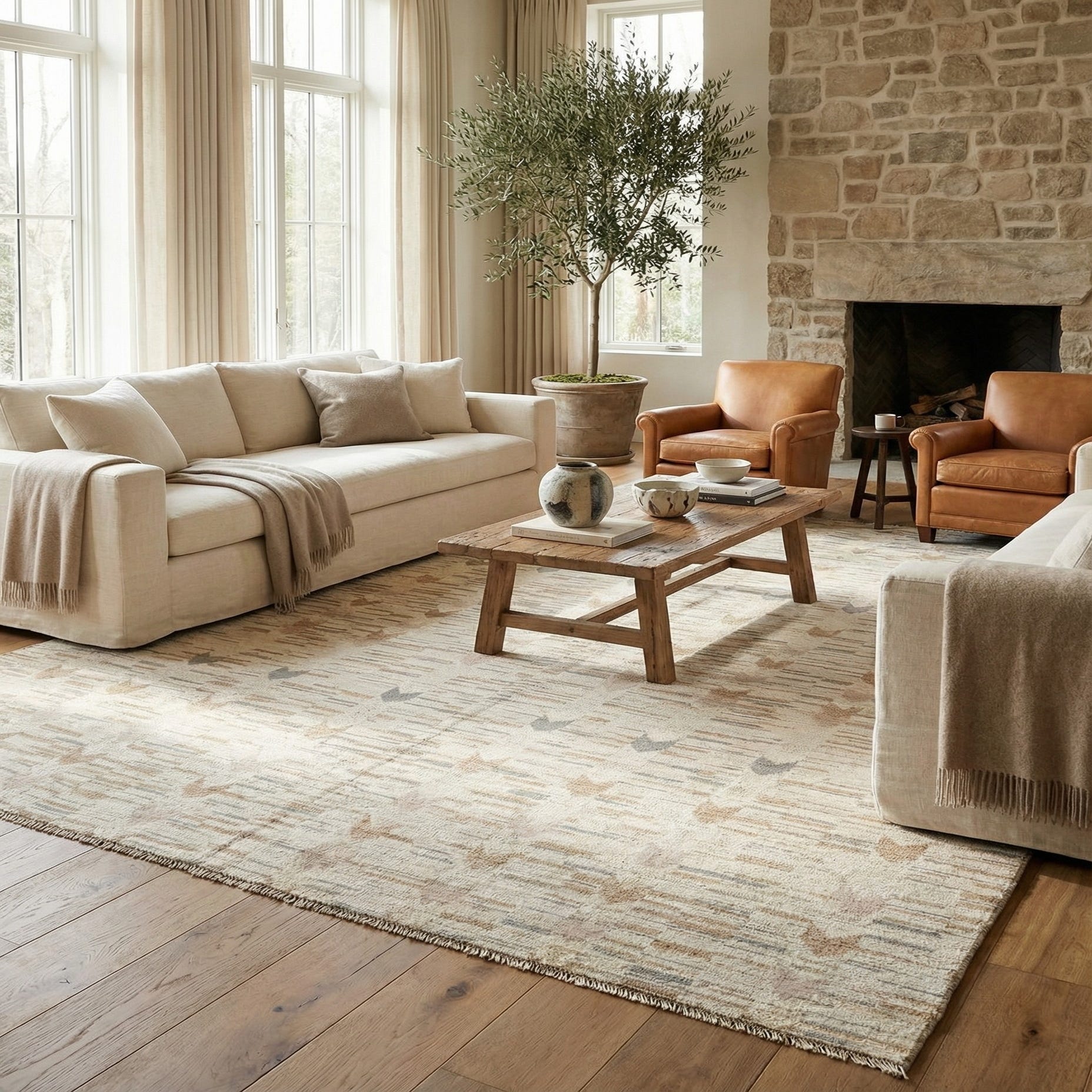 Primary color is Cream. Colors in this rug include: Cream, Rectangle.