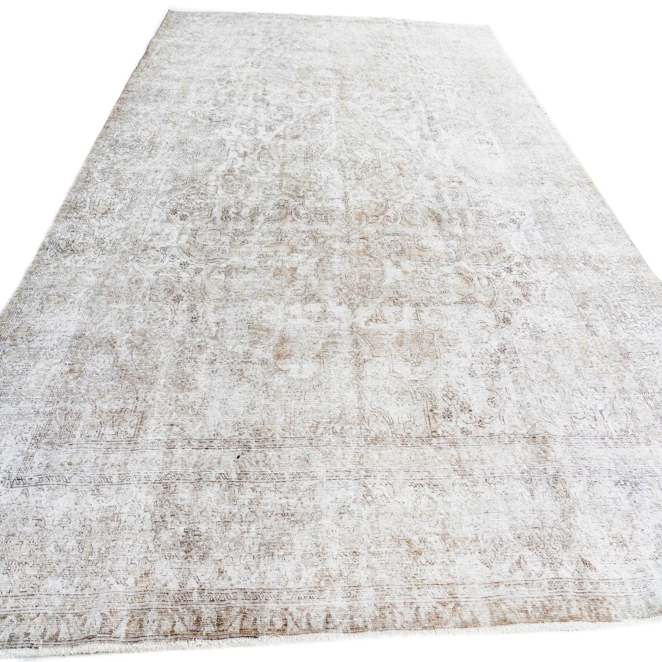 This Persian Ultra Vintage rug is an antique Persian Rug that has been washed, over-dyed, and then shaved down to a low pile. Look at the detail pictures to fully appreciate the uniqueness of this piece.