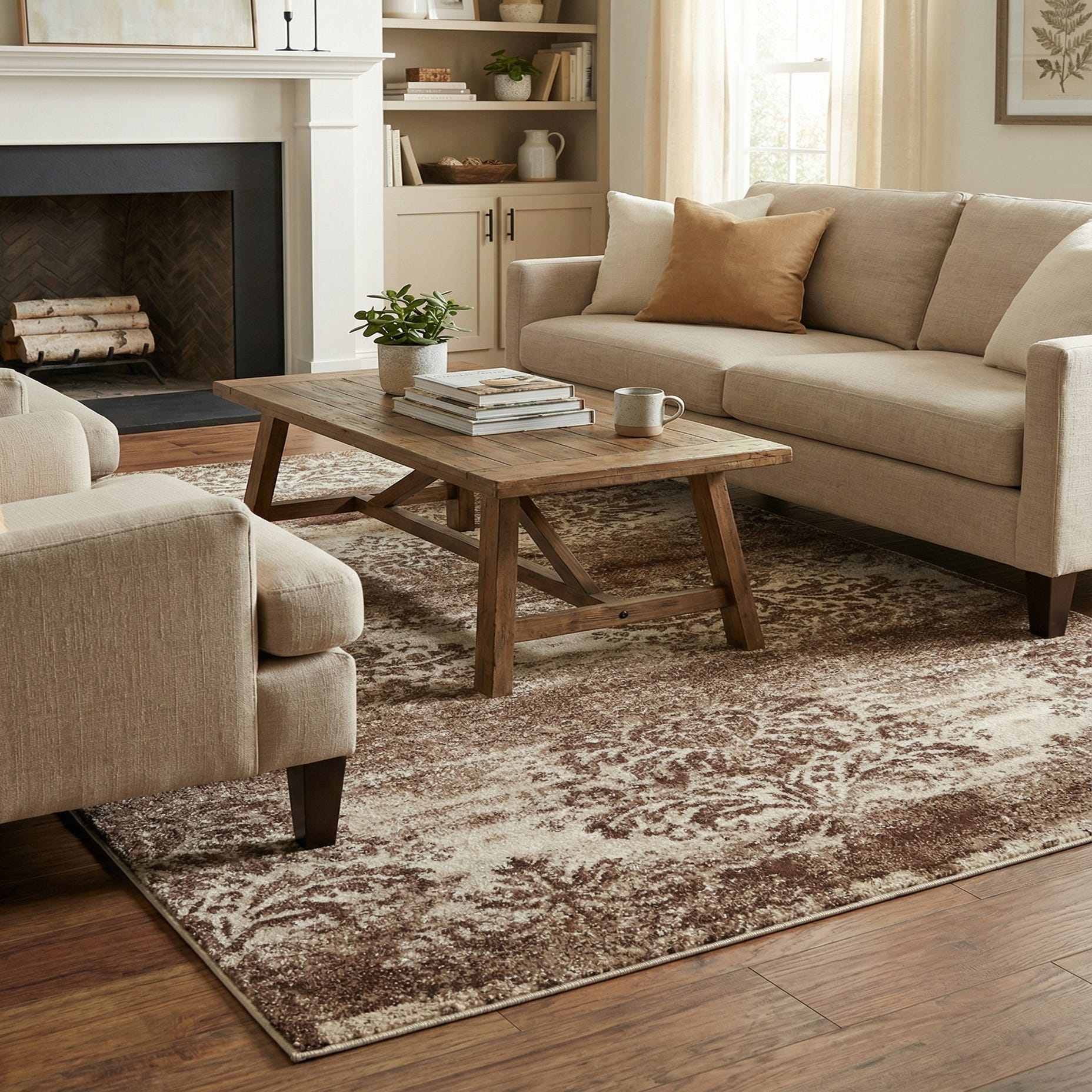 Primary color is Dark Beige. Colors in this rug include: Dark Beige, Brown, Cream, Light Brown.