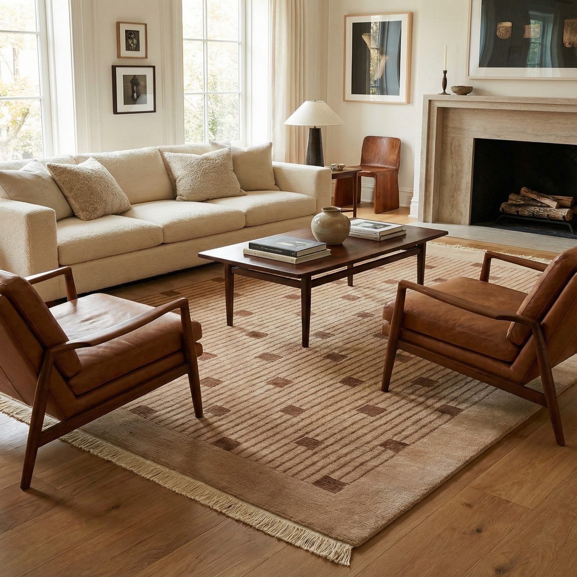 Primary color is Dark Beige. Colors in this rug include: Dark Beige, Brown.