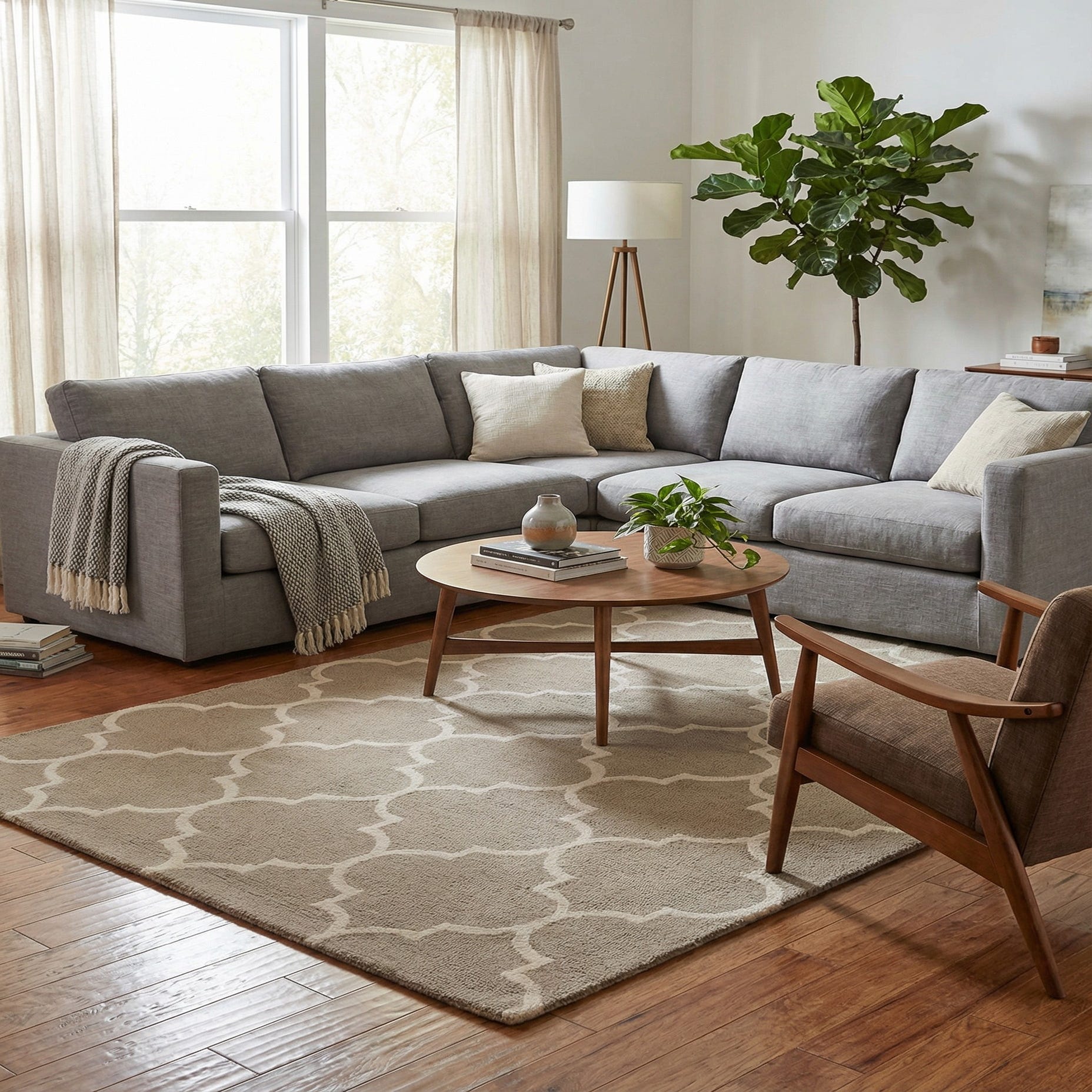 Primary color is Dark Beige. Colors in this rug include: Dark Beige, Cream.