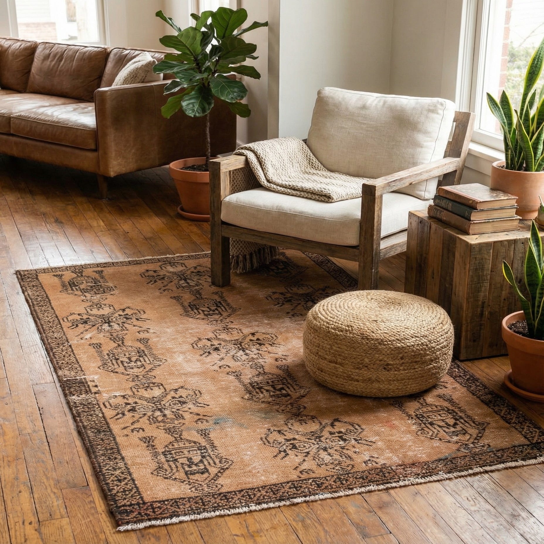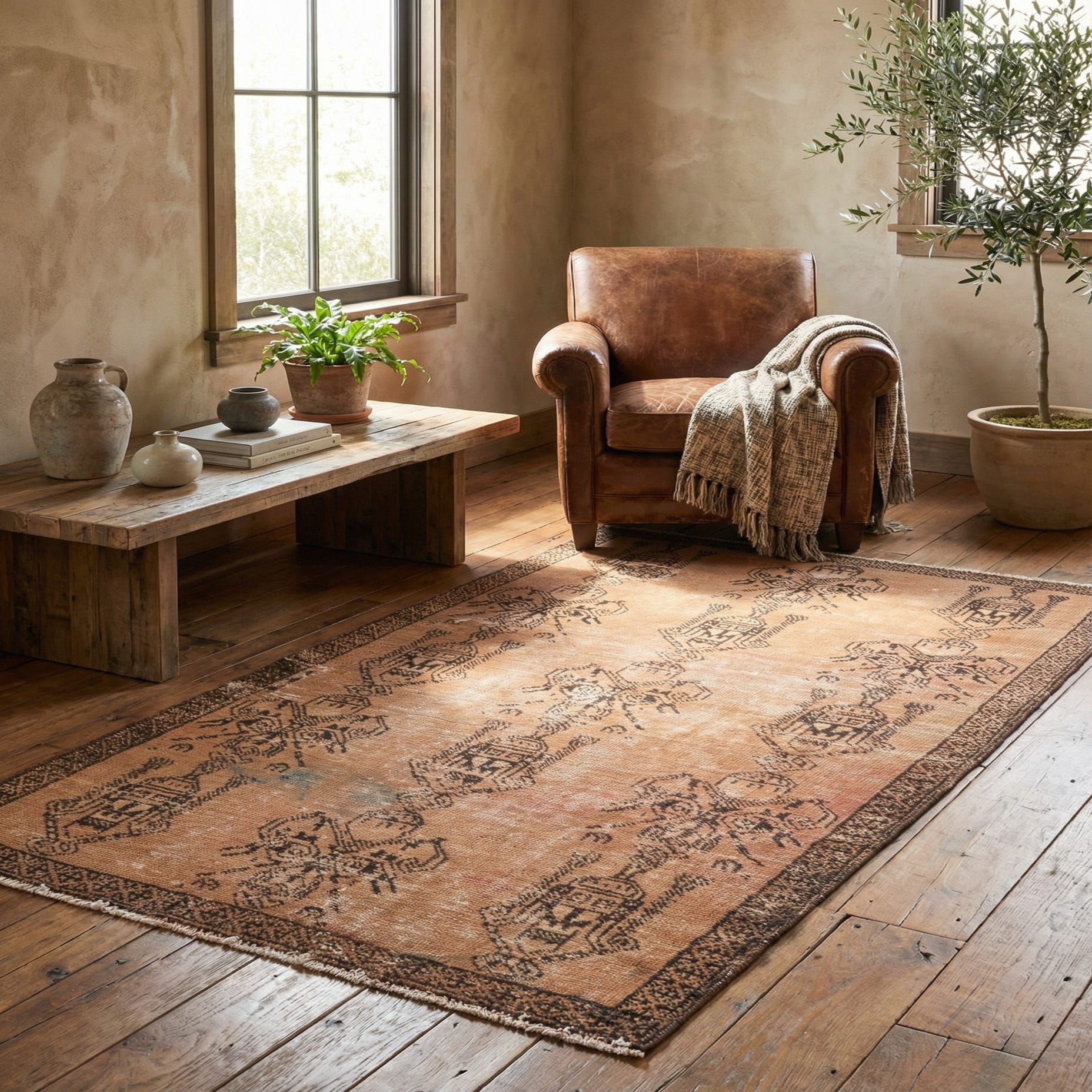 This Persian Ultra Vintage rug is an antique Persian Rug that has been washed, over-dyed, and then shaved down to a low pile. Look at the detail pictures to fully appreciate the uniqueness of this piece.