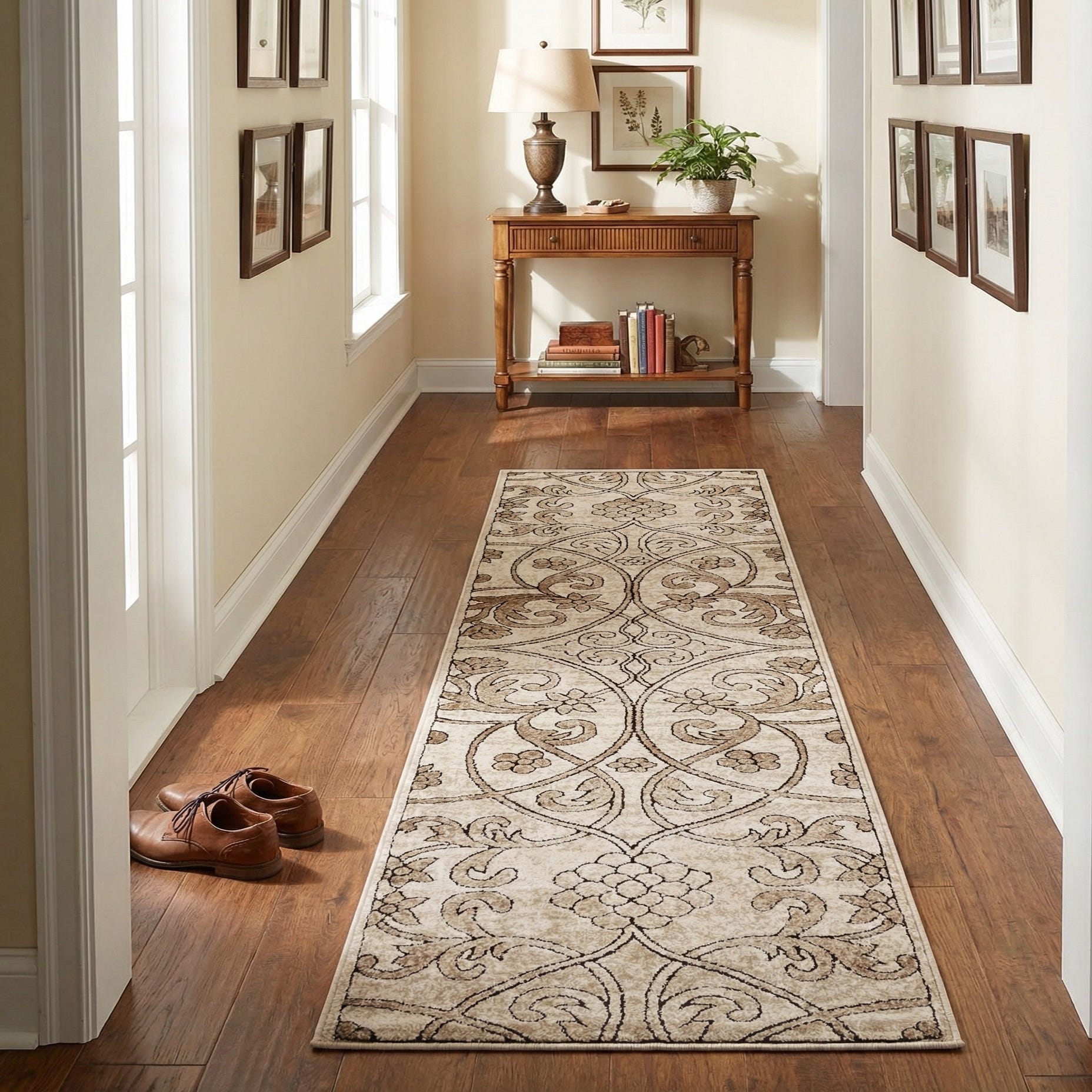 Primary color is Dark Beige. Colors in this rug include: Dark Beige, Beige, Brown, Cream.