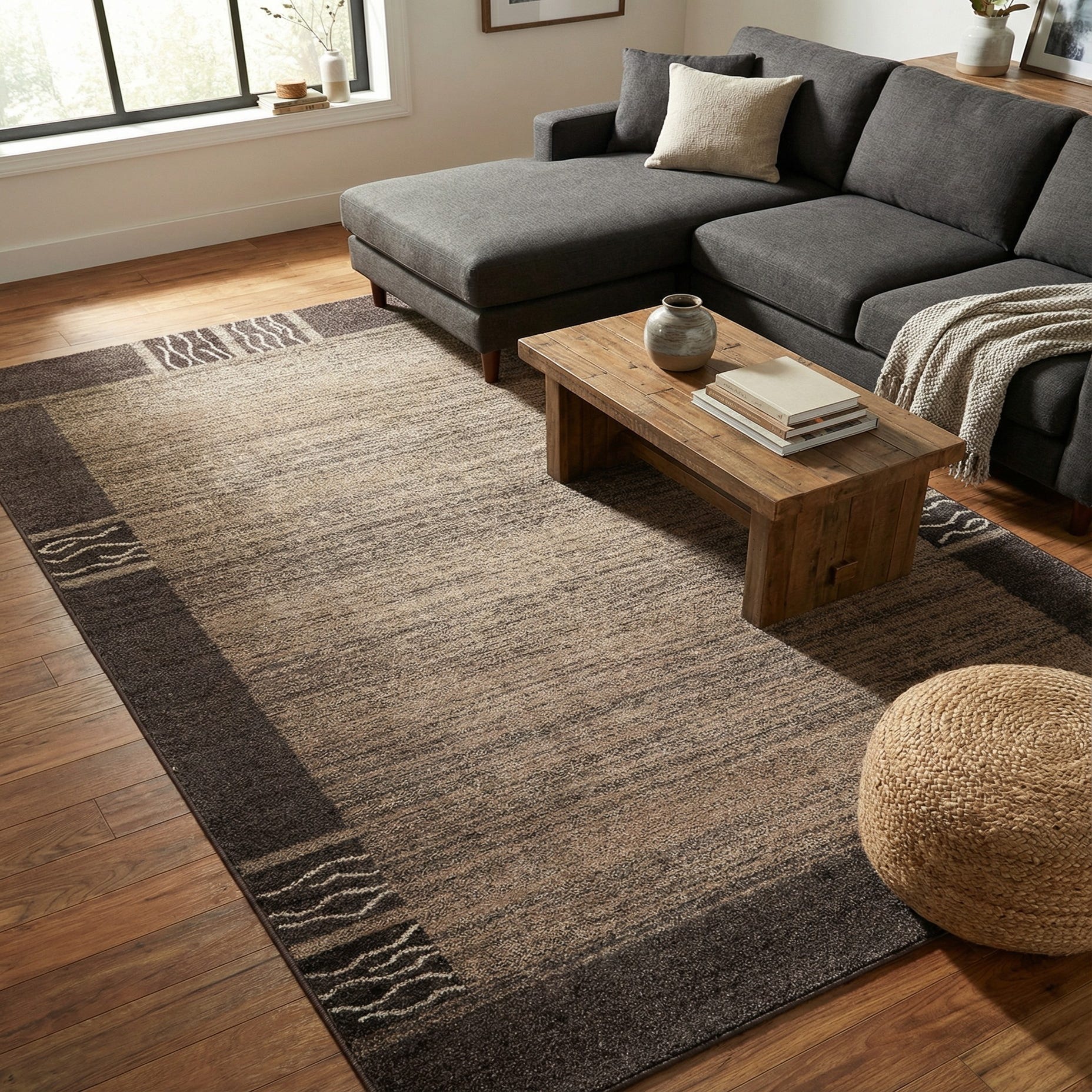 Primary color is Dark Beige. Colors in this rug include: Dark Beige, Beige, Brown.