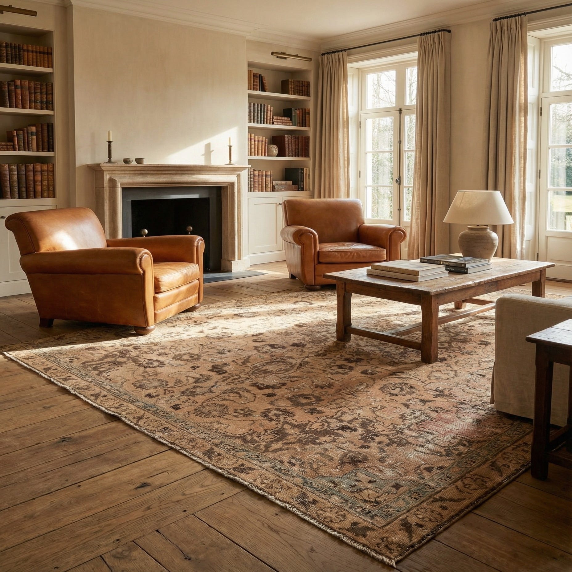 7' x 9' 6 Hand Knotted Ultra Vintage Persian Wool Rug