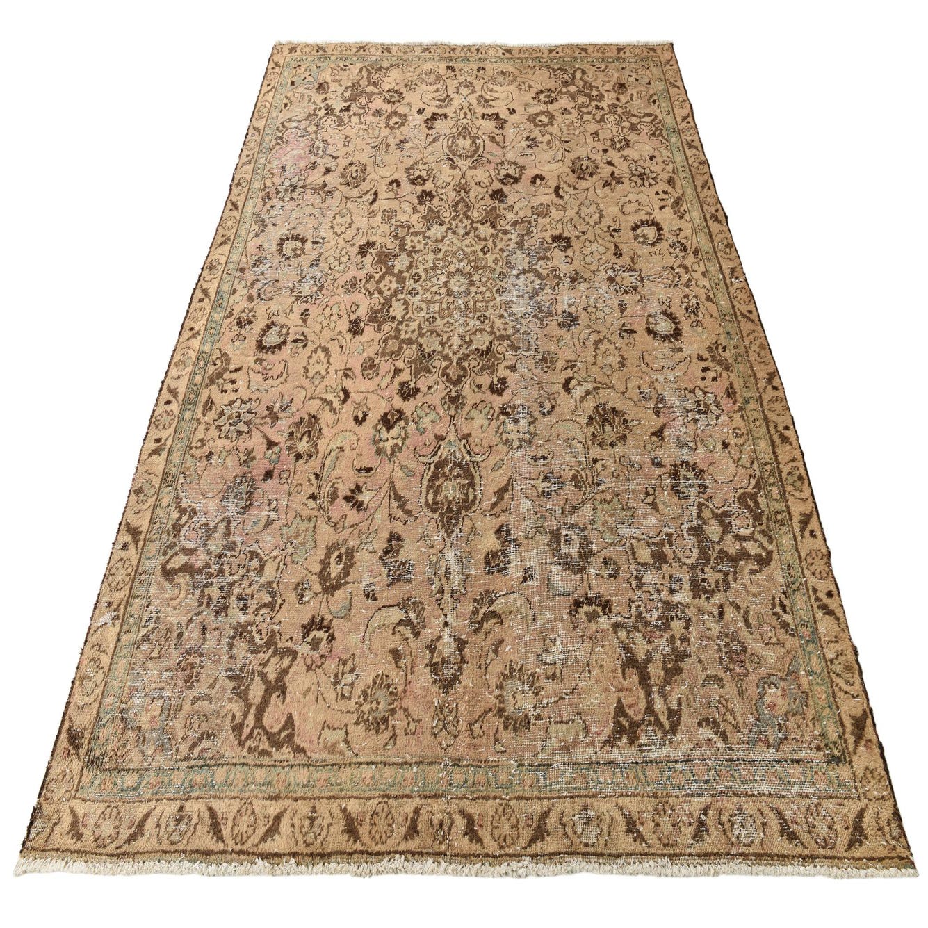 This Persian Ultra Vintage rug is an antique Persian Rug that has been washed, over-dyed, and then shaved down to a low pile. Look at the detail pictures to fully appreciate the uniqueness of this piece.