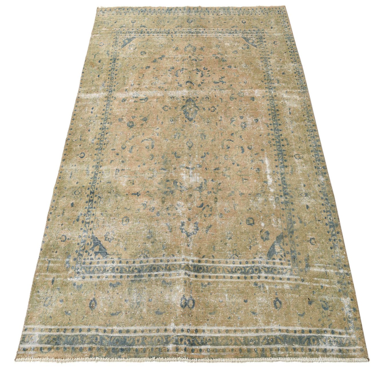 This Persian Ultra Vintage rug is an antique Persian Rug that has been washed, over-dyed, and then shaved down to a low pile. Look at the detail pictures to fully appreciate the uniqueness of this piece.