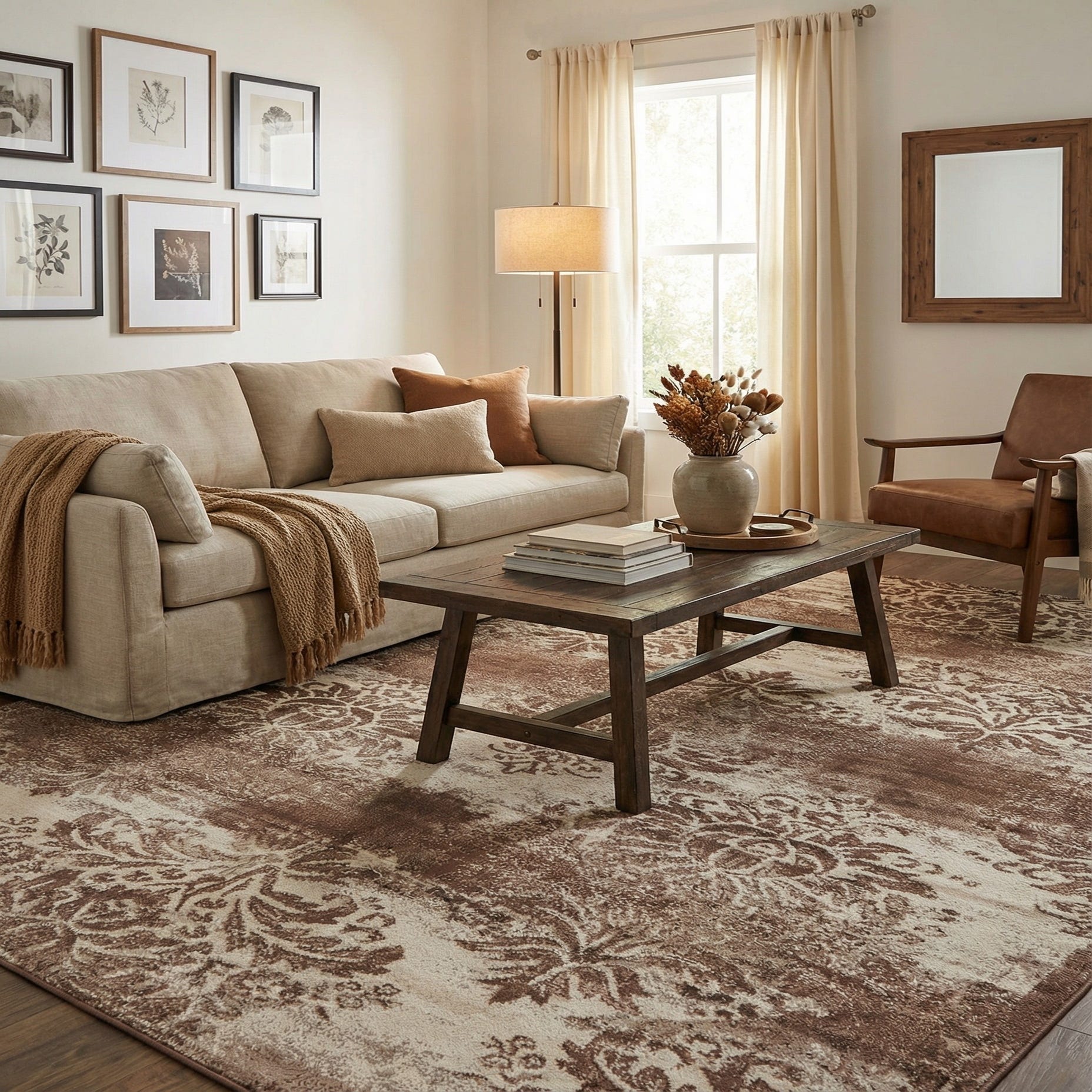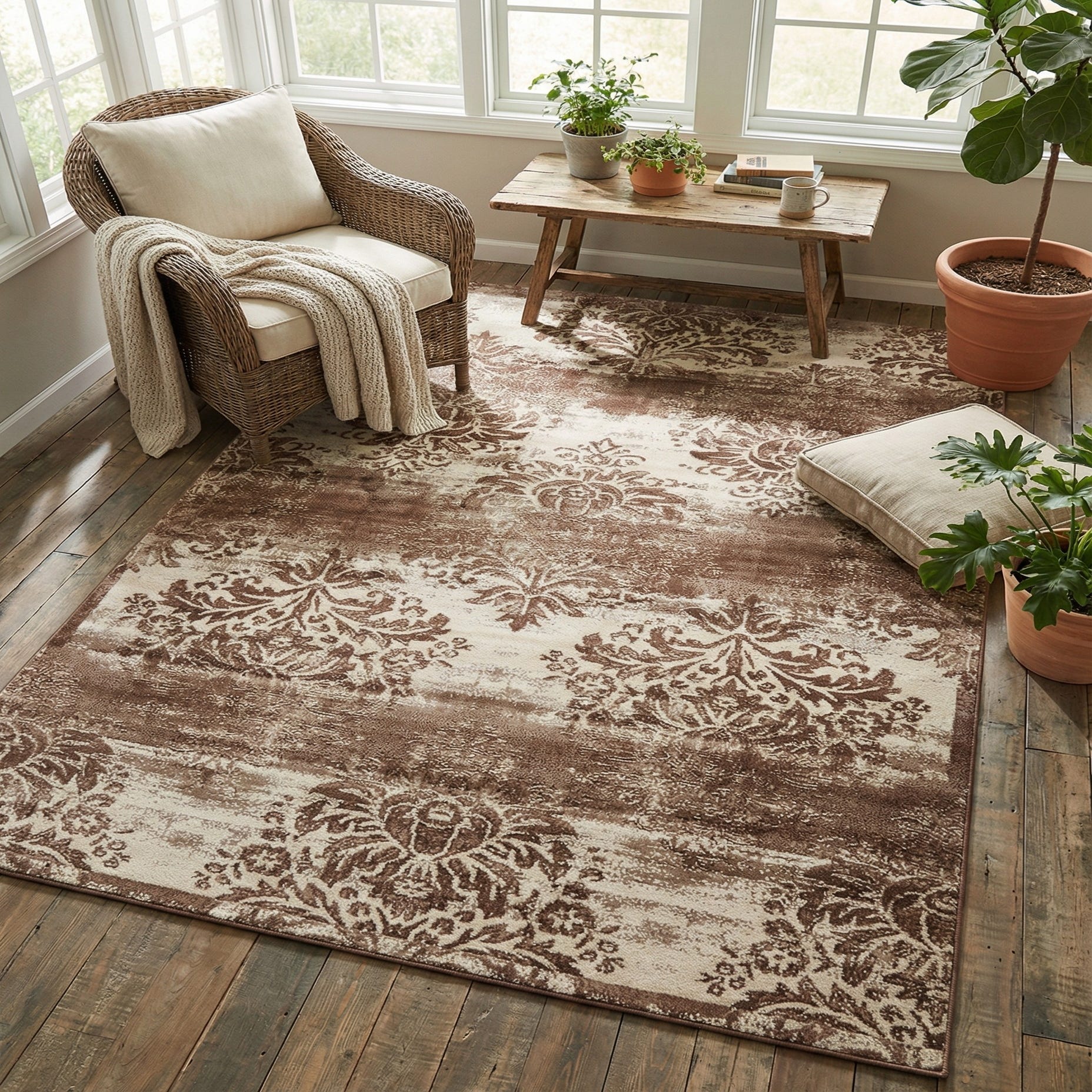 Primary color is Dark Beige. Colors in this rug include: Dark Beige, Brown, Cream, Light Brown.