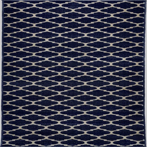 Primary color is Dark Blue. Colors in this rug include: Dark Blue, Navy Blue, Ivory.