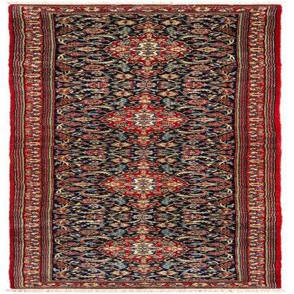 Detail image of 2' 7 x 13' 2  Hand Knotted Qom Persian Runner Rug