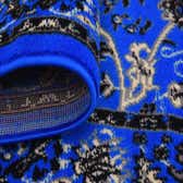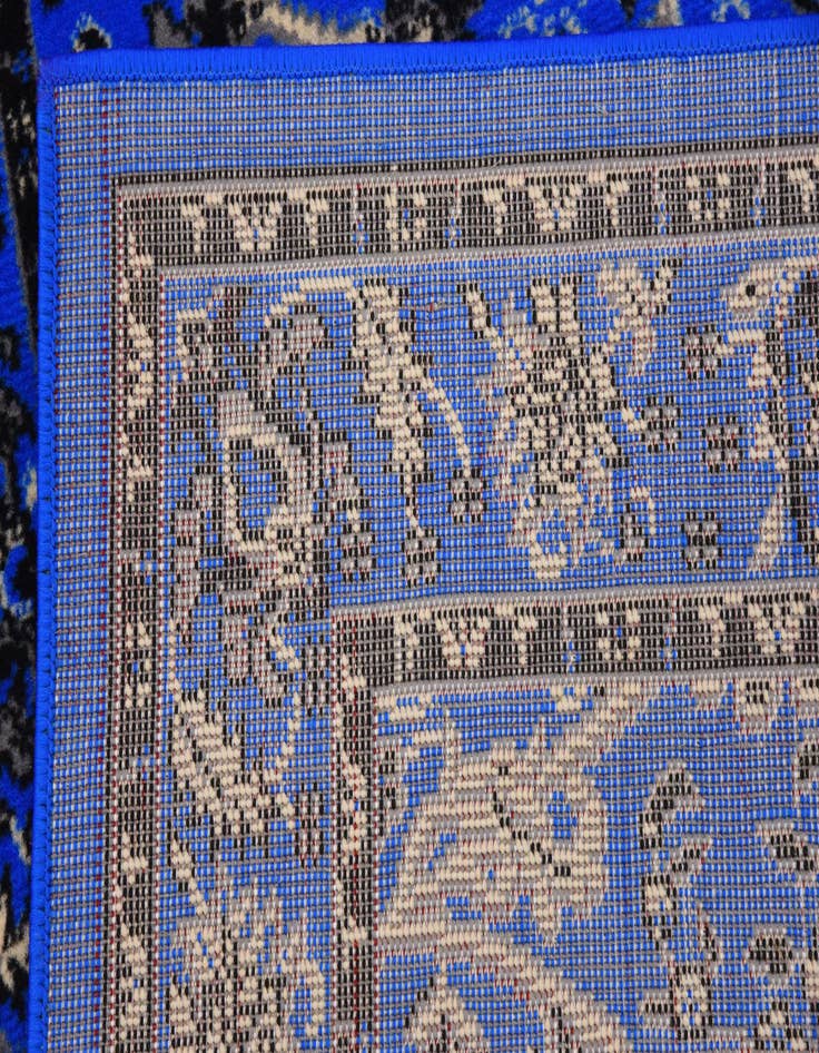 Primary color is Dark Blue. Colors in this rug include: Dark Blue, Black, Cream, Gray.