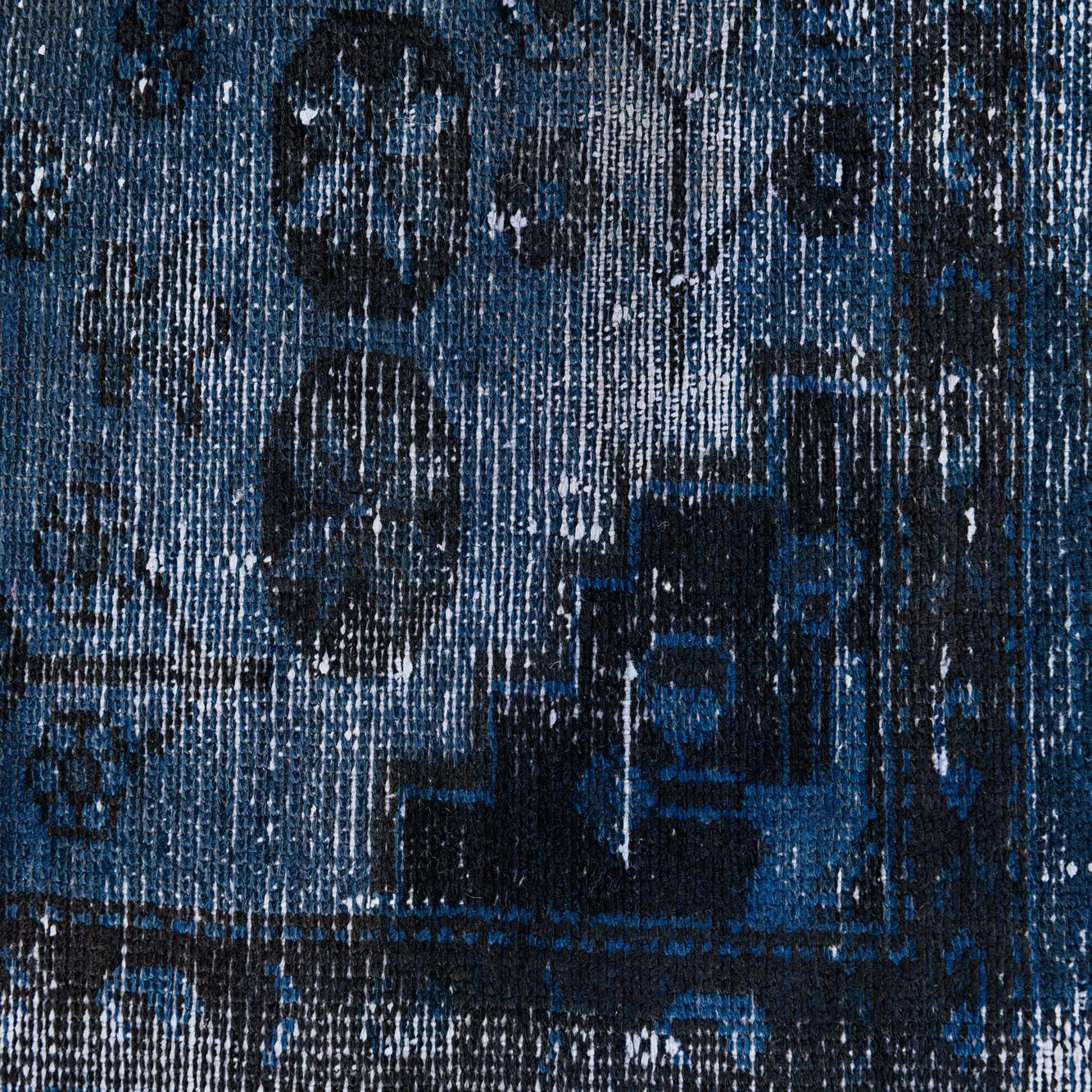 Primary color is Dark Blue. Colors in this rug include: Dark Blue, Black, Ivory.