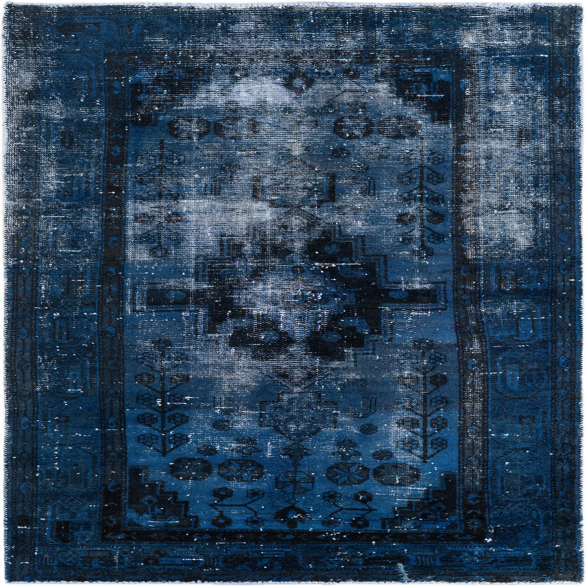 This Persian Ultra Vintage rug is an antique Persian Rug that has been washed, over-dyed, and then shaved down to a low pile. Look at the detail pictures to fully appreciate the uniqueness of this piece.