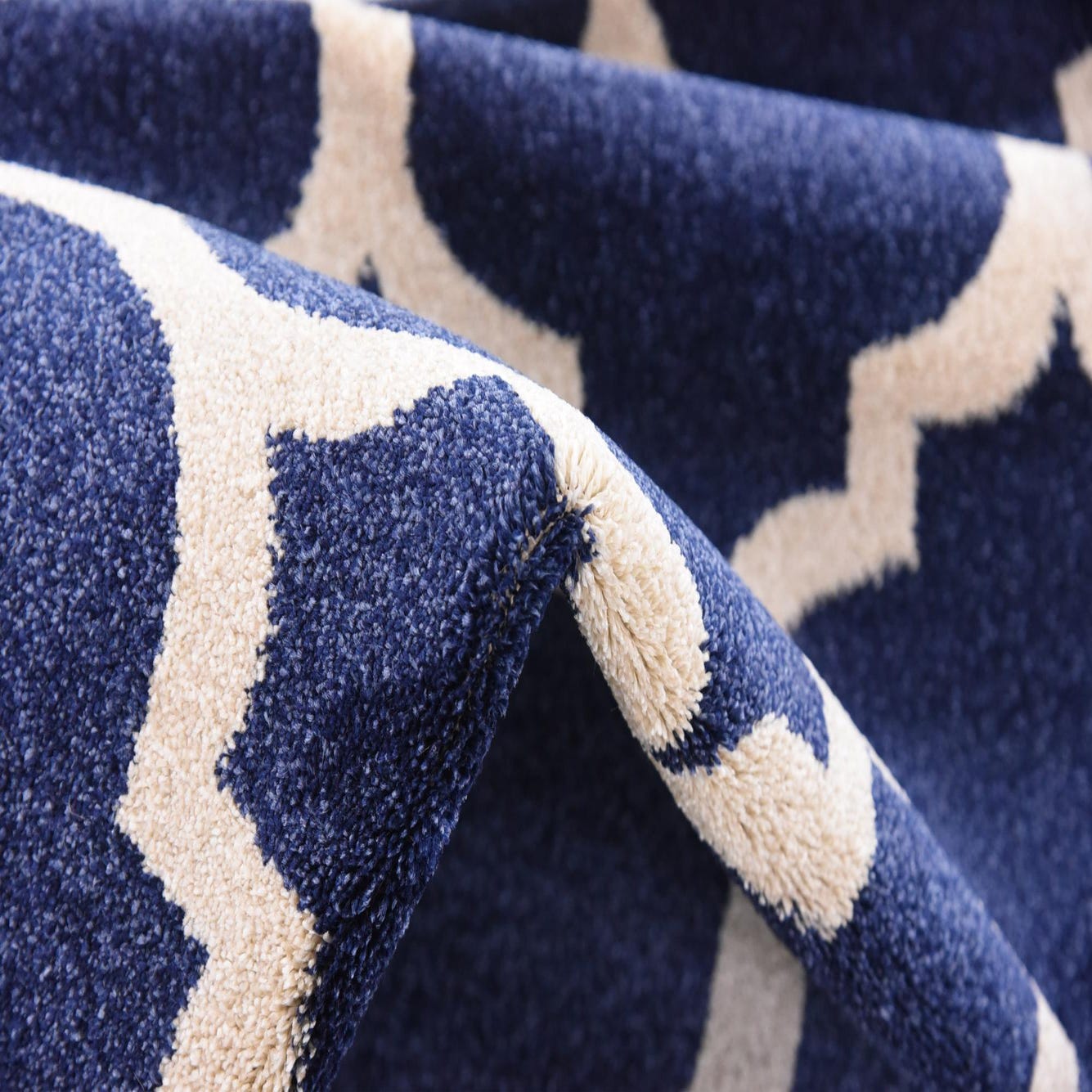 Primary color is Dark Blue. Colors in this rug include: Dark Blue, Navy Blue, Ivory.