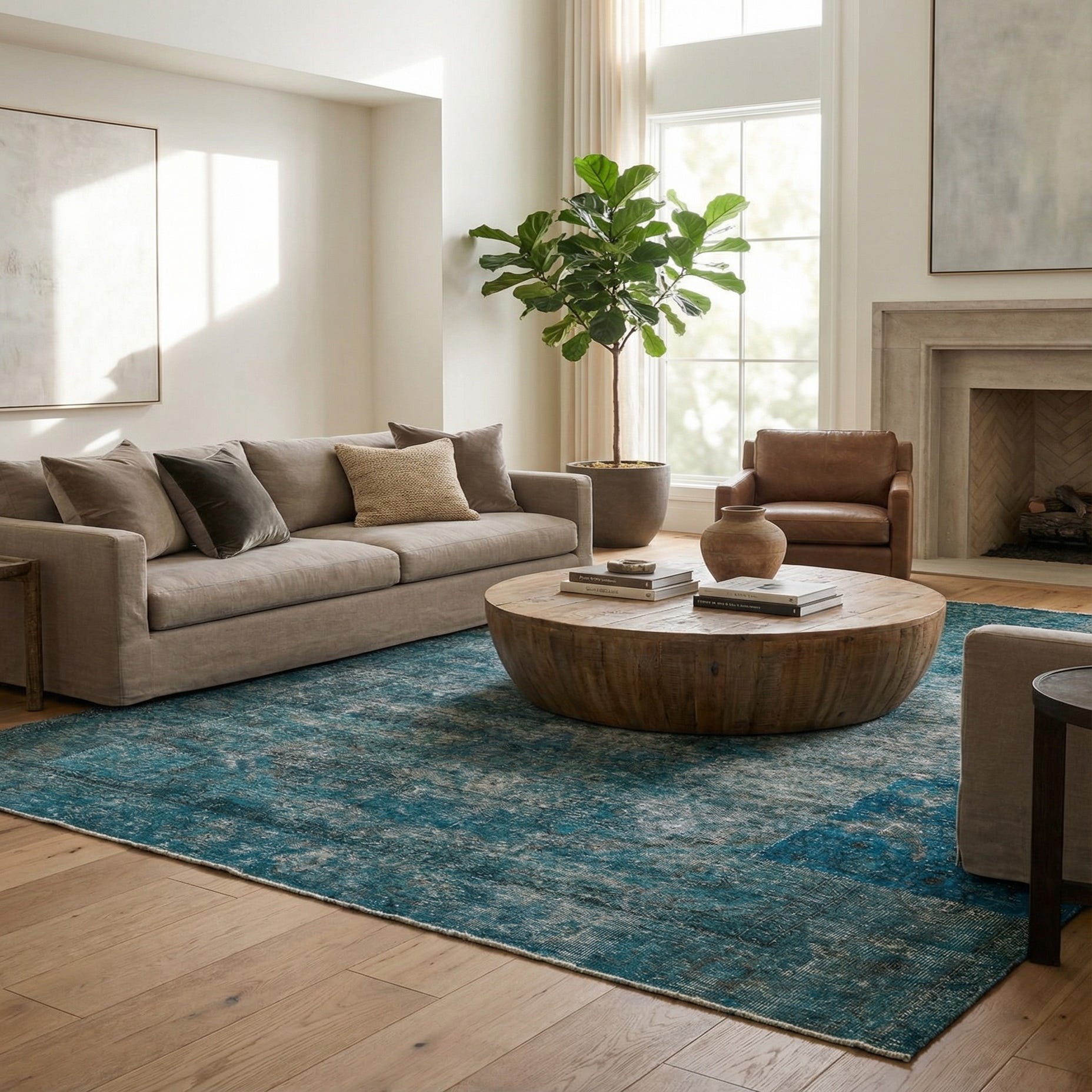 This Persian Ultra Vintage rug is an antique Persian Rug that has been washed, over-dyed, and then shaved down to a low pile. Look at the detail pictures to fully appreciate the uniqueness of this piece.