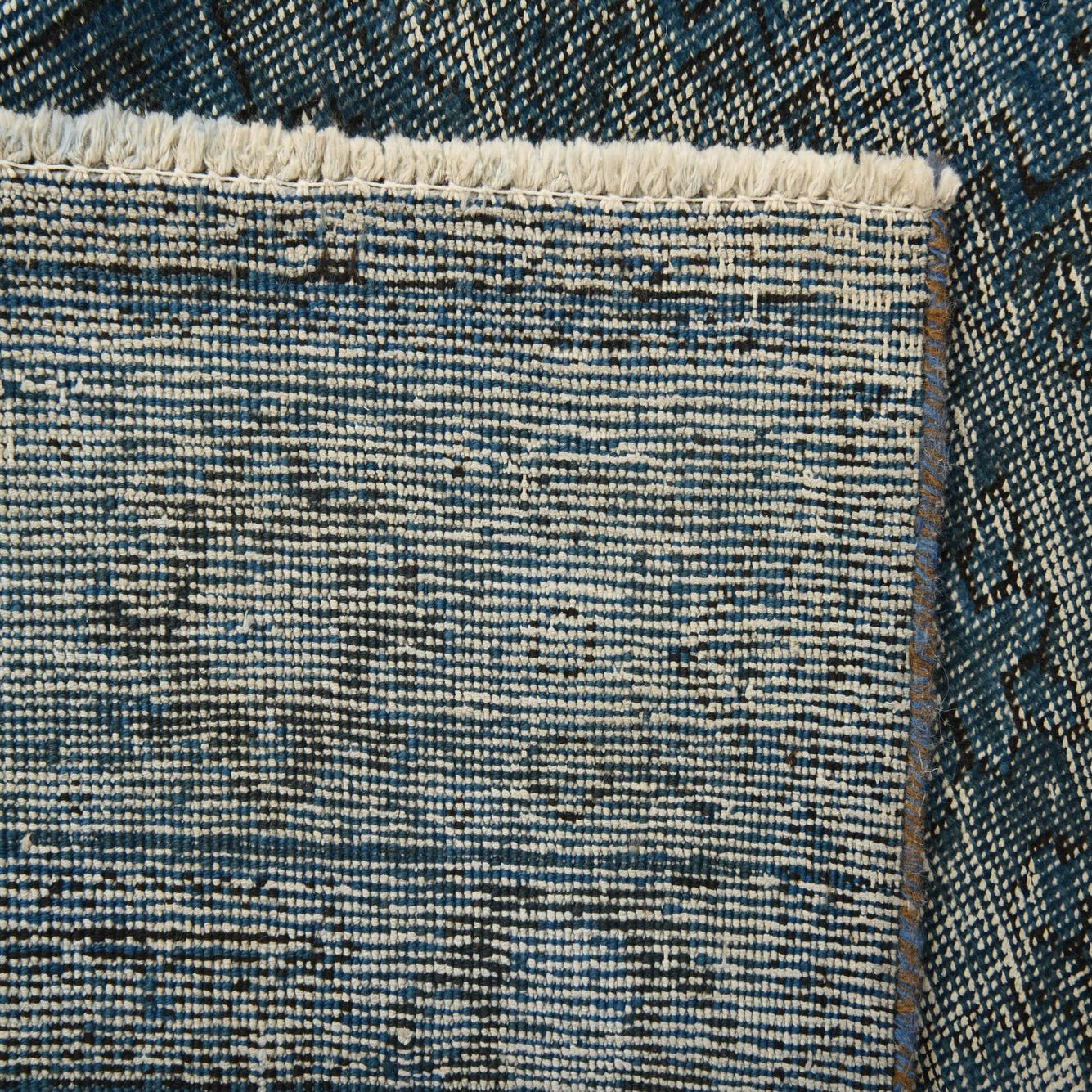 Primary color is Dark Blue. Colors in this rug include: Dark Blue, Black, Ivory.