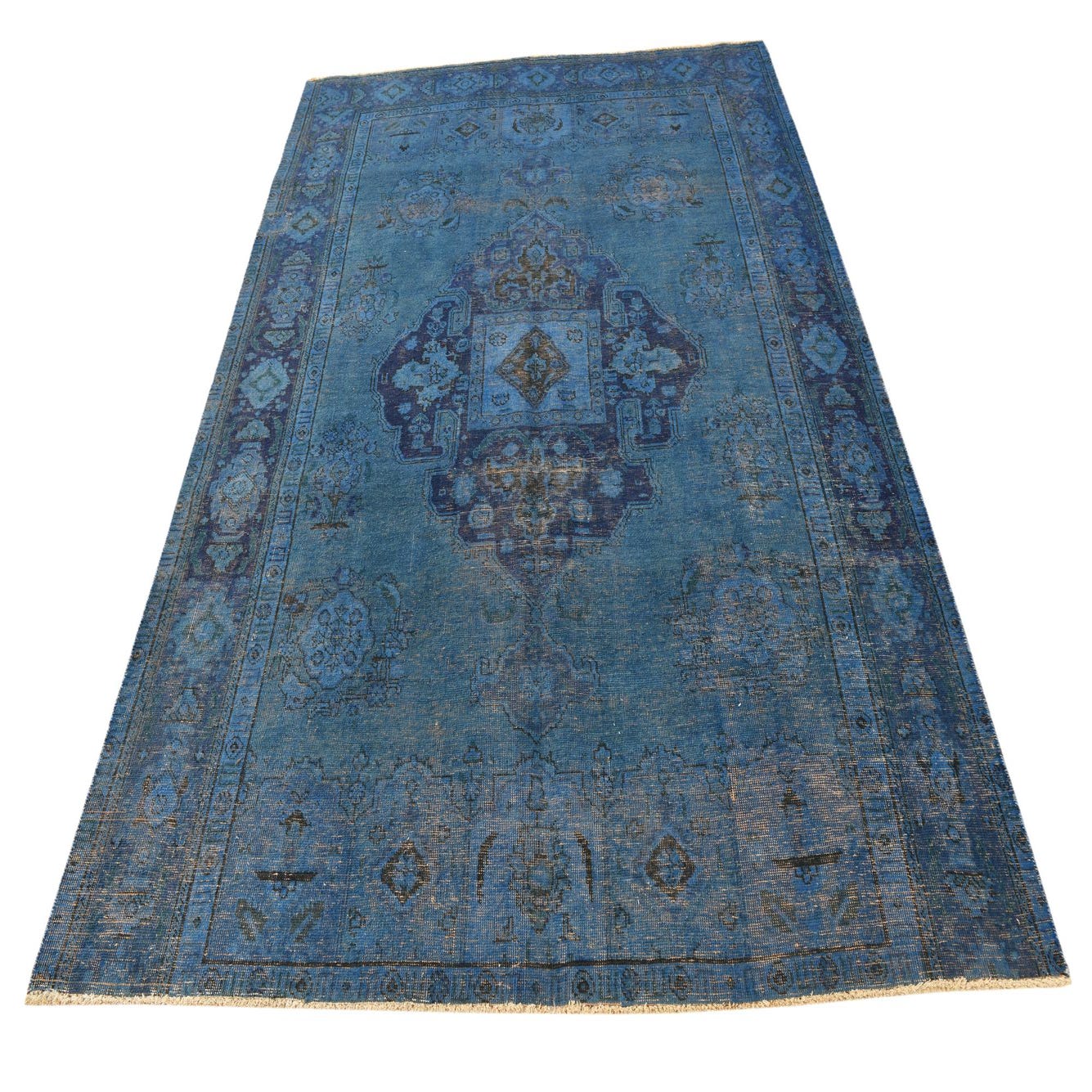 This Persian Ultra Vintage rug is an antique Persian Rug that has been washed, over-dyed, and then shaved down to a low pile. Look at the detail pictures to fully appreciate the uniqueness of this piece.
