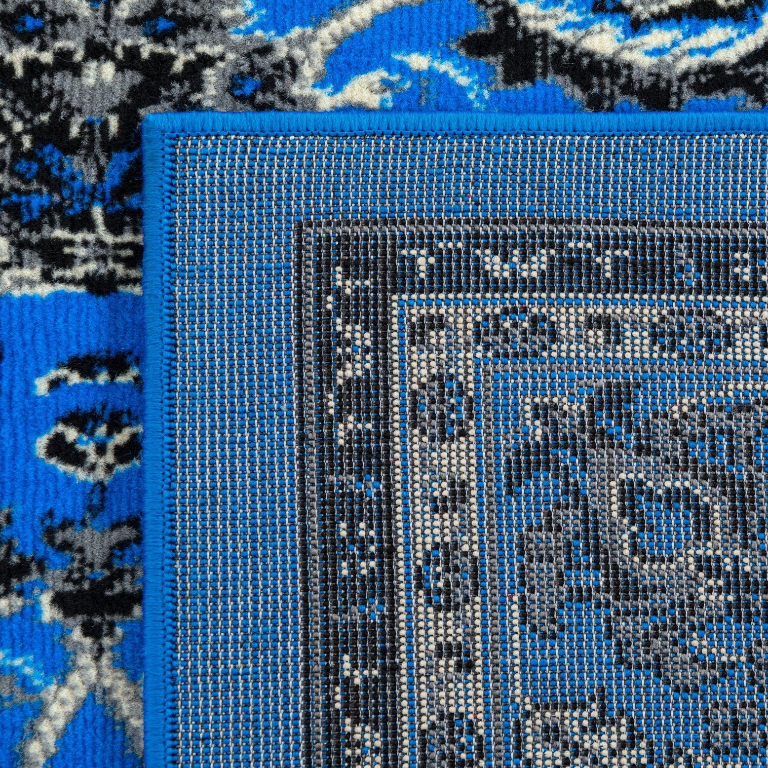 Primary color is Dark Blue. Colors in this rug include: Dark Blue, Black, Cream, Gray.