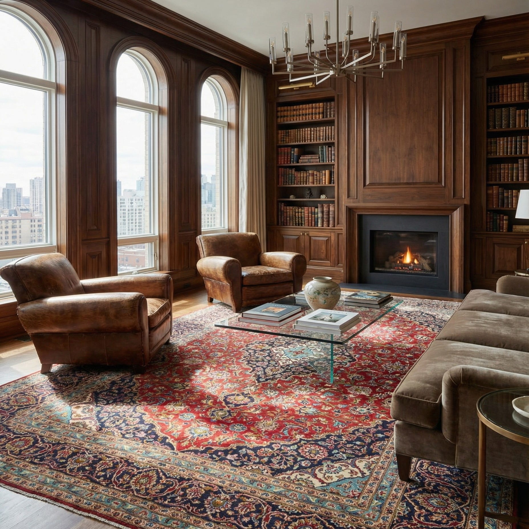 Primary image 9' 5 x 12' 10  Hand Knotted Kashan Persian Wool Rug