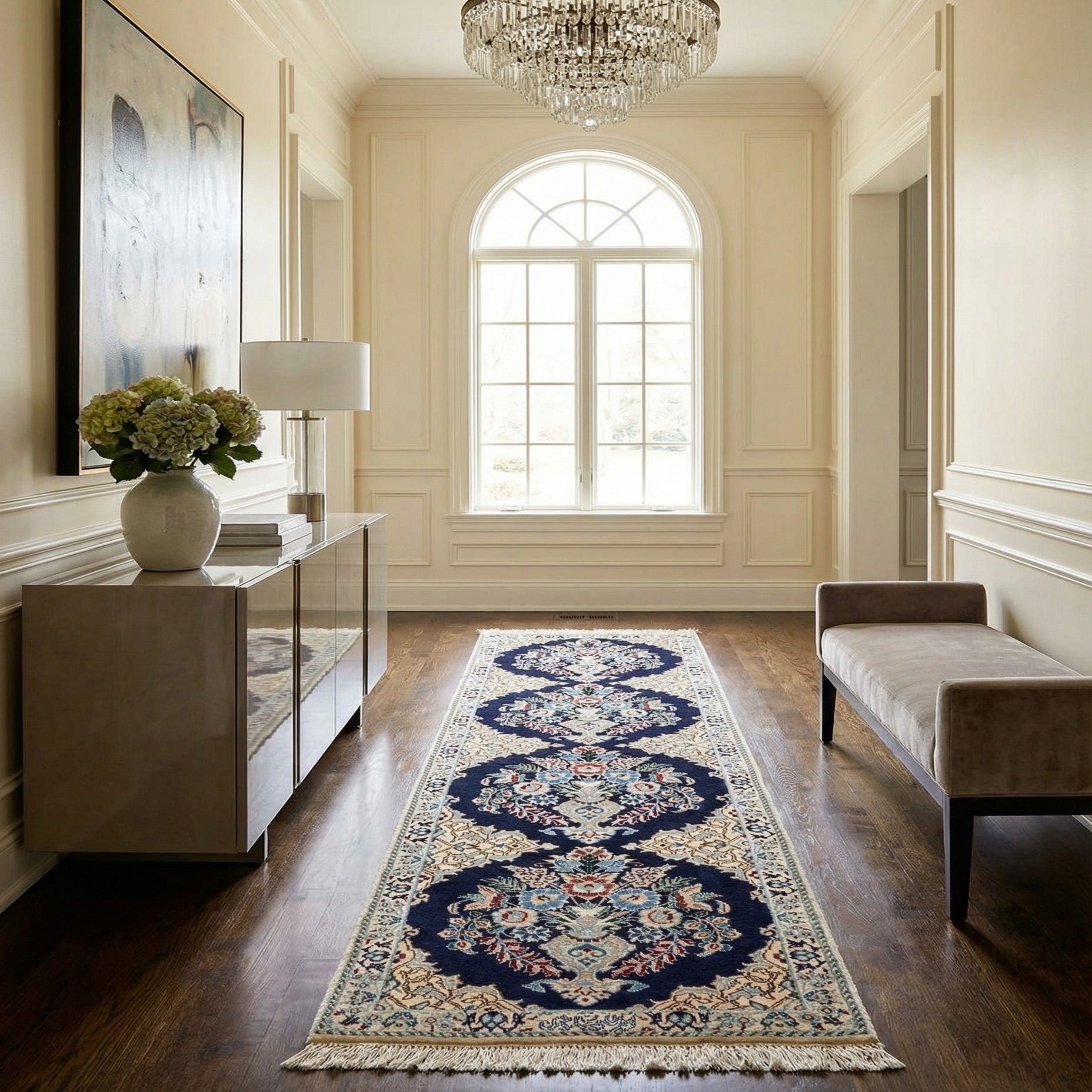 Primary color is Dark Blue. Colors in this rug include: Dark Blue, Runner.