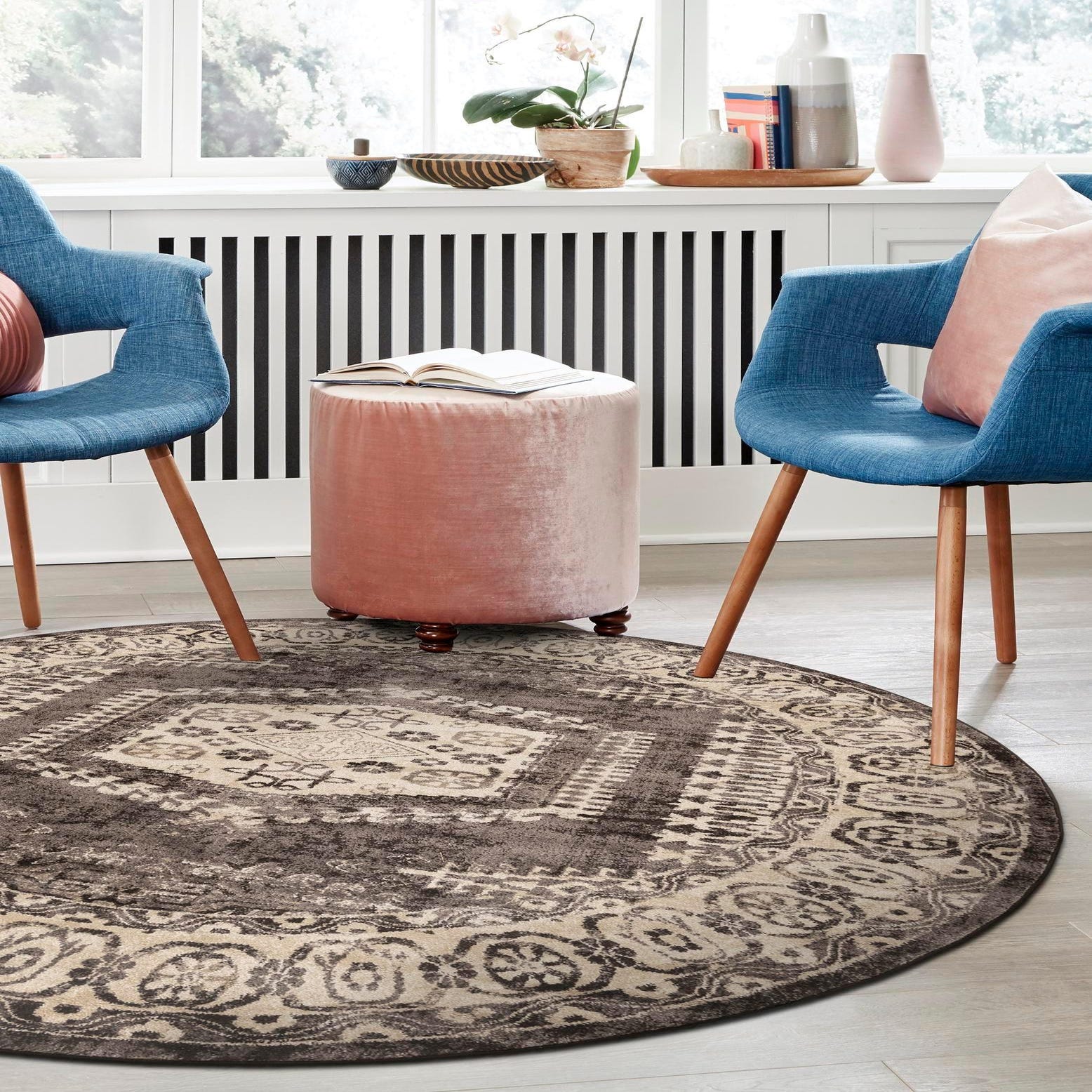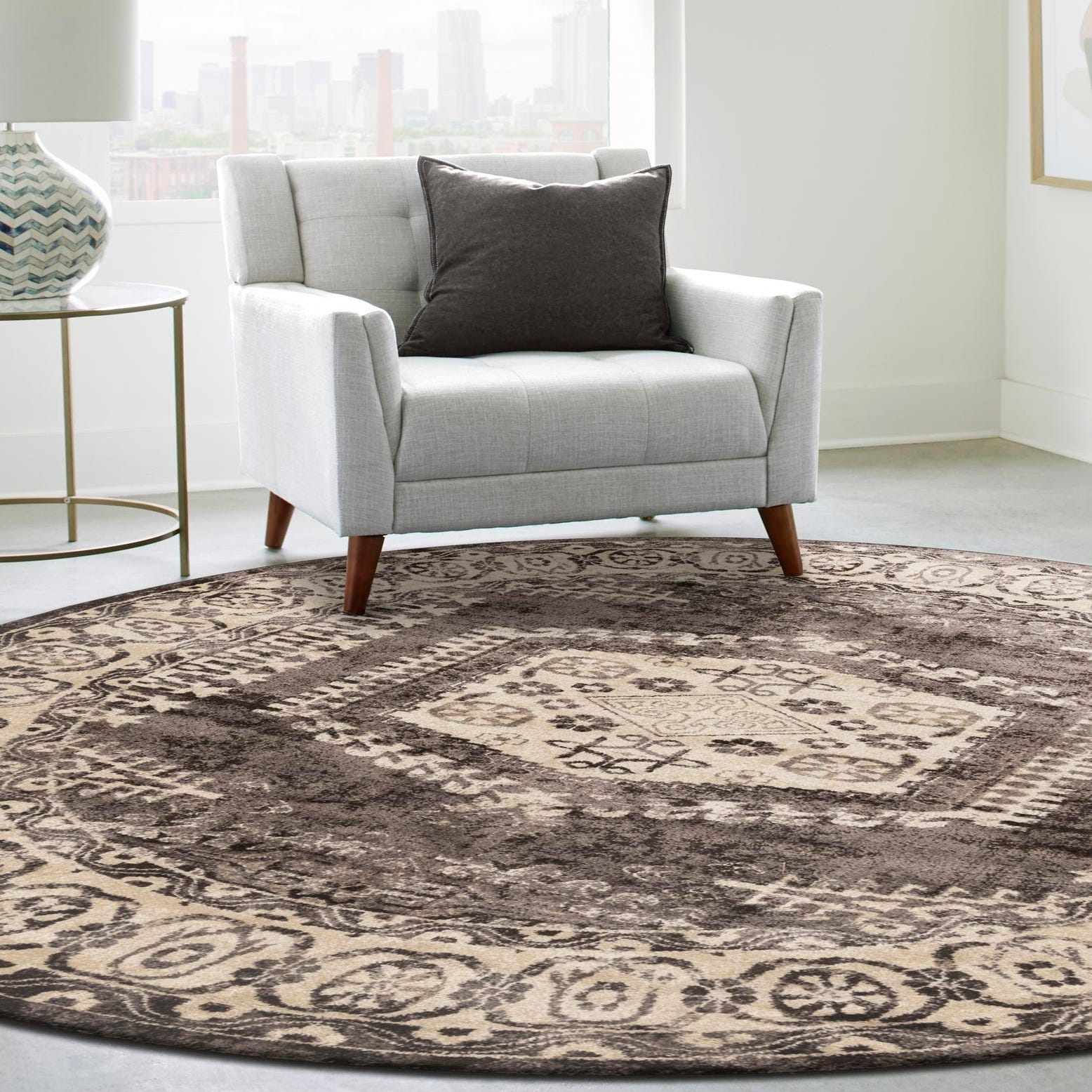 Primary color is Dark Brown. Colors in this rug include: Dark Brown, Gray, Ivory, Light Brown.