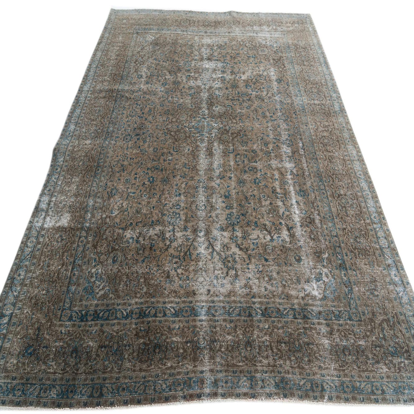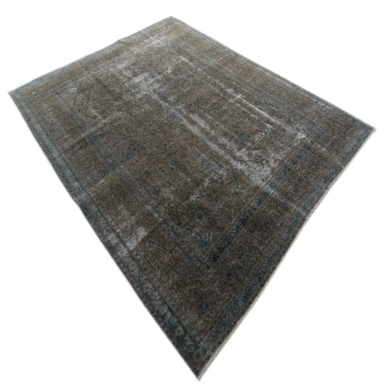 This Persian Ultra Vintage rug is an antique Persian Rug that has been washed, over-dyed, and then shaved down to a low pile. Look at the detail pictures to fully appreciate the uniqueness of this piece.