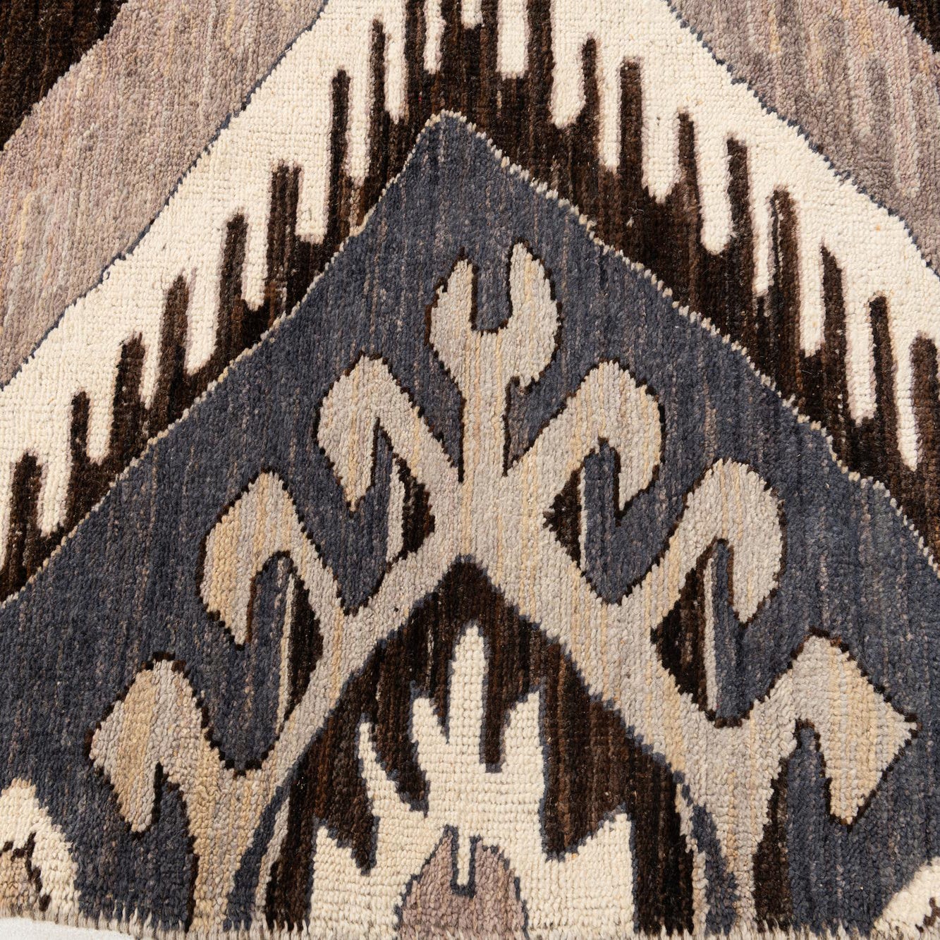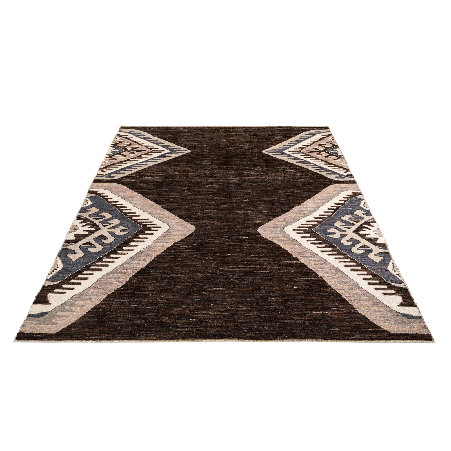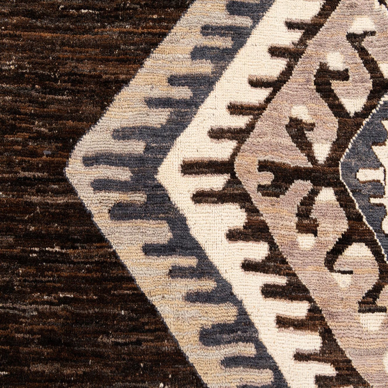 Primary color is Dark Brown. Colors in this rug include: Dark Brown, Brown, Gray, Ivory, Light Brown.