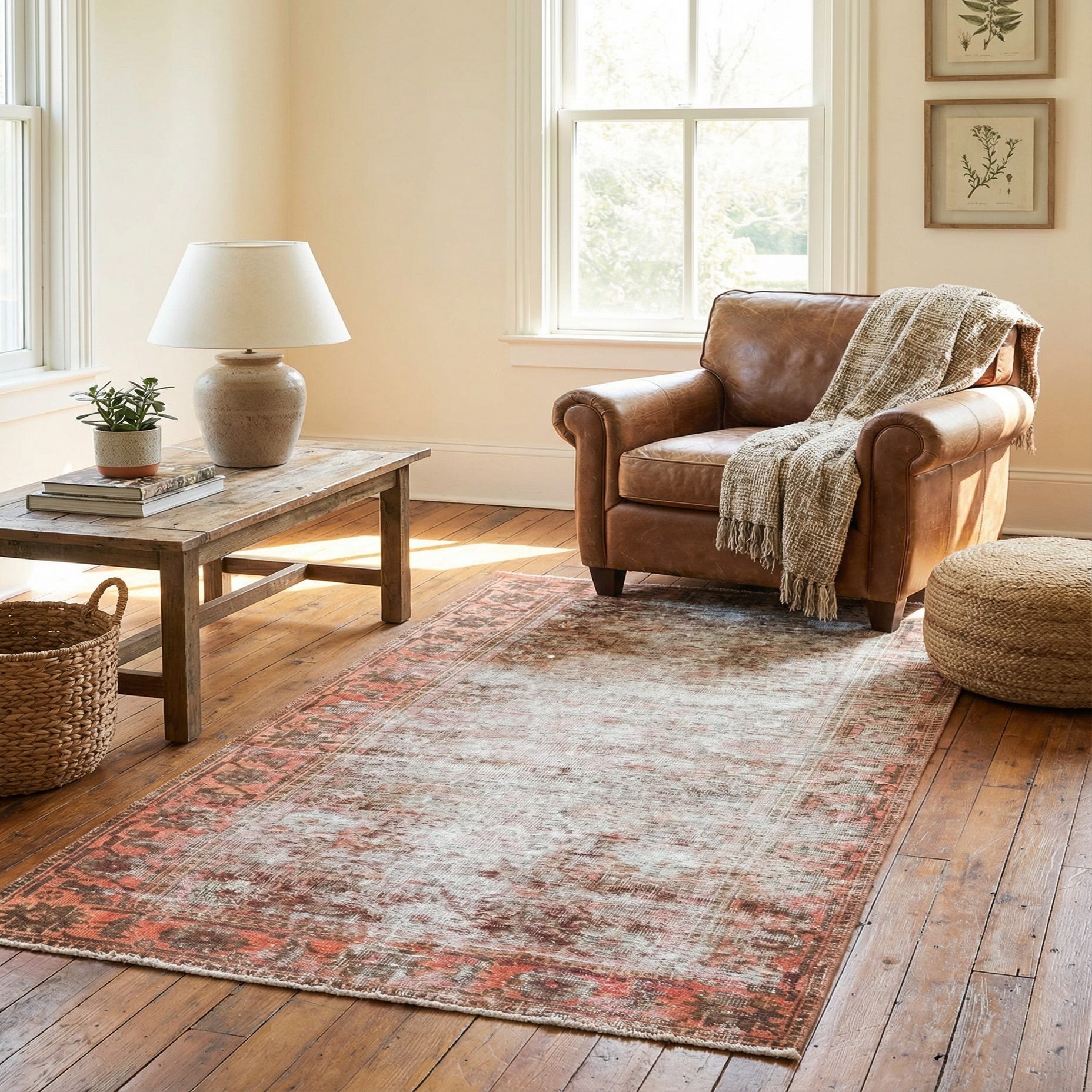 3' 7 x 7' Hand Knotted Ultra Vintage Persian Wool Rug