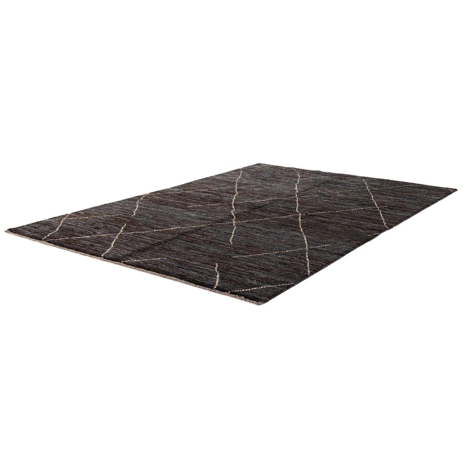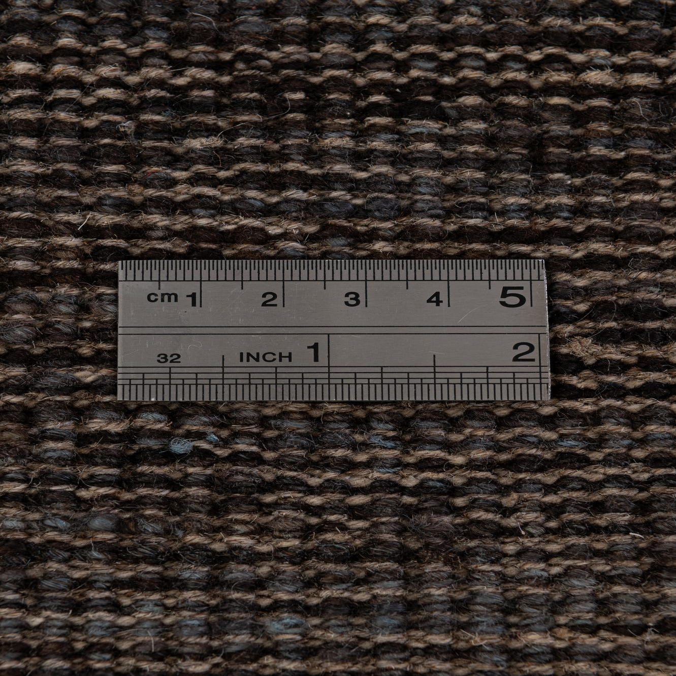 Primary color is Dark Brown. Colors in this rug include: Dark Brown, Blue, Ivory, Black.