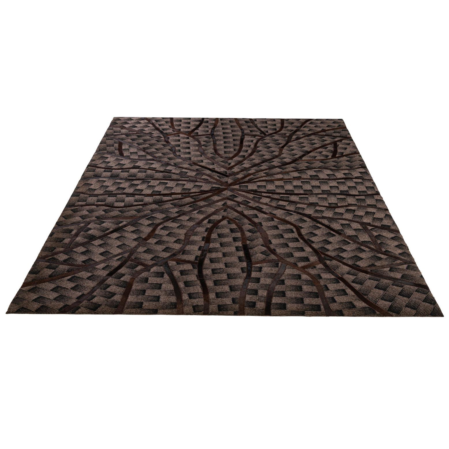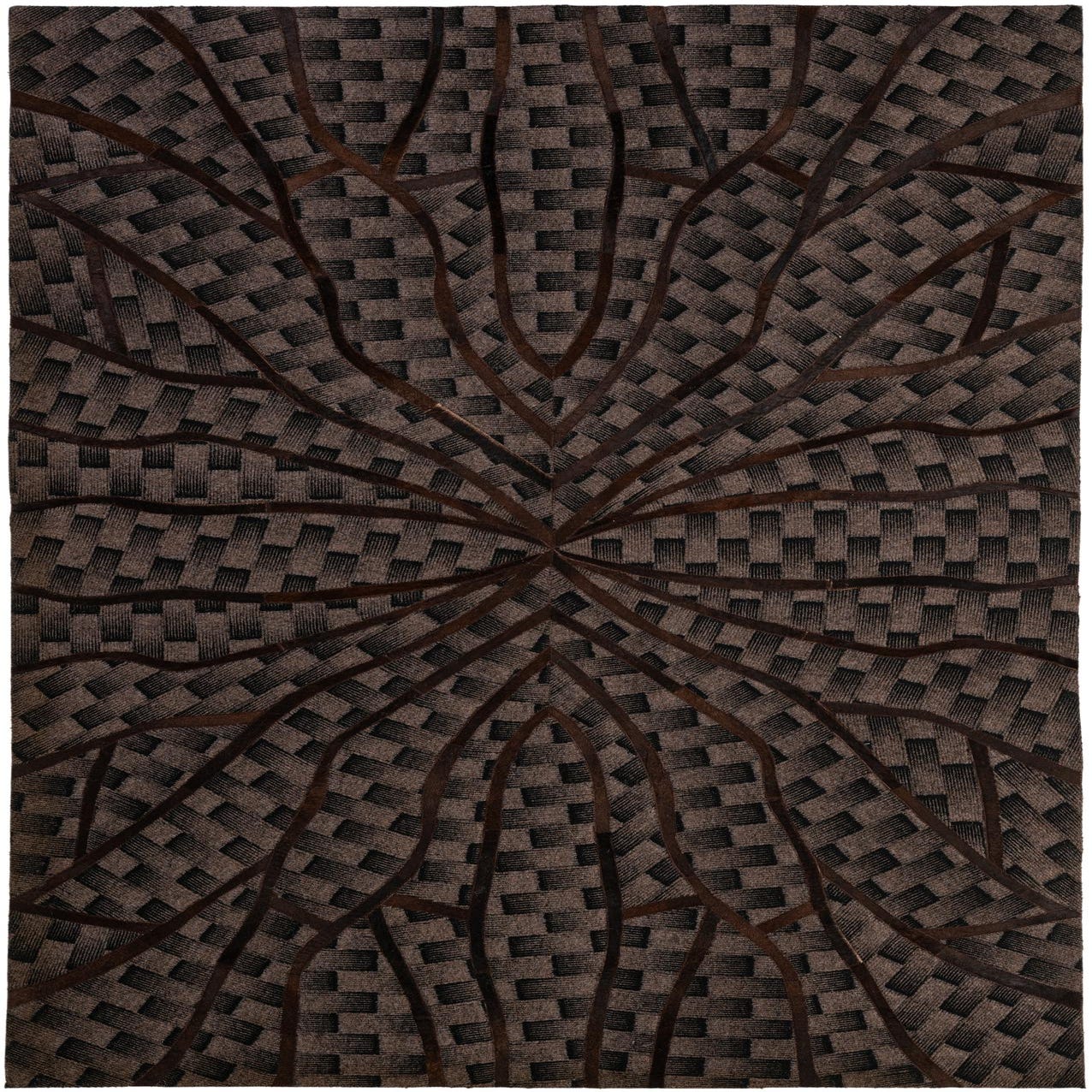 Primary color is Dark Brown. Colors in this rug include: Dark Brown, Brown, Black.
