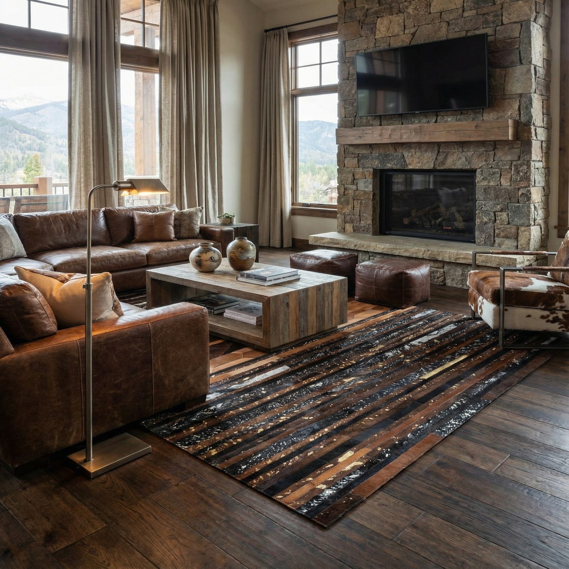 5' 1 x 7' 10 Cowhide Leather Rug