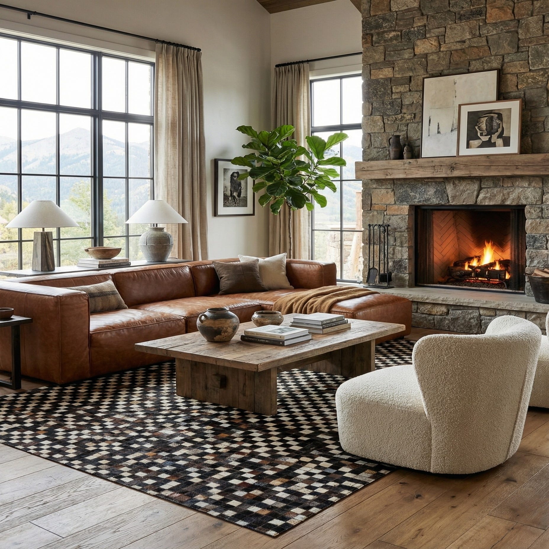 Primary color is Dark Brown. Colors in this rug include: Dark Brown, Beige, Black, Brown, Ivory, Gray, Tan.
