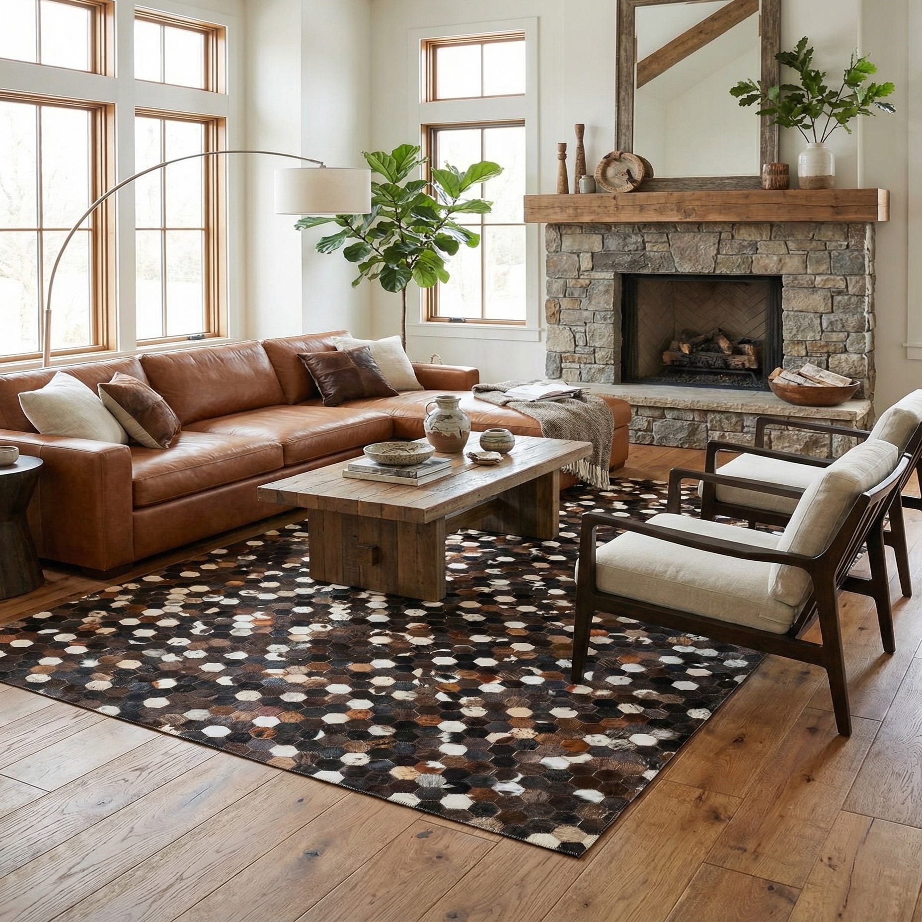 Detail image of 5' 1 x 8' Cowhide Leather Rug