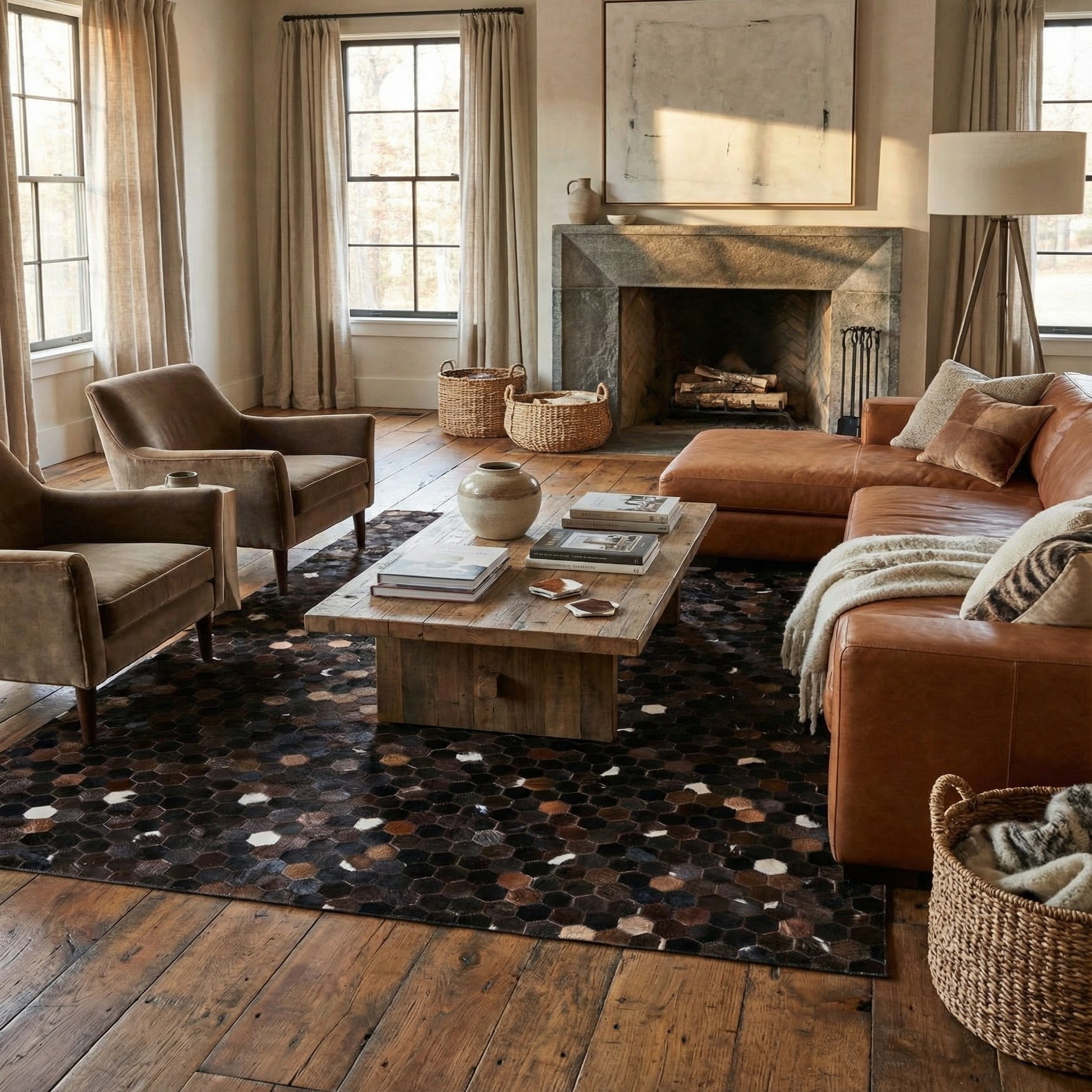 Detail image of 5' 1 x 8' Cowhide Leather Rug