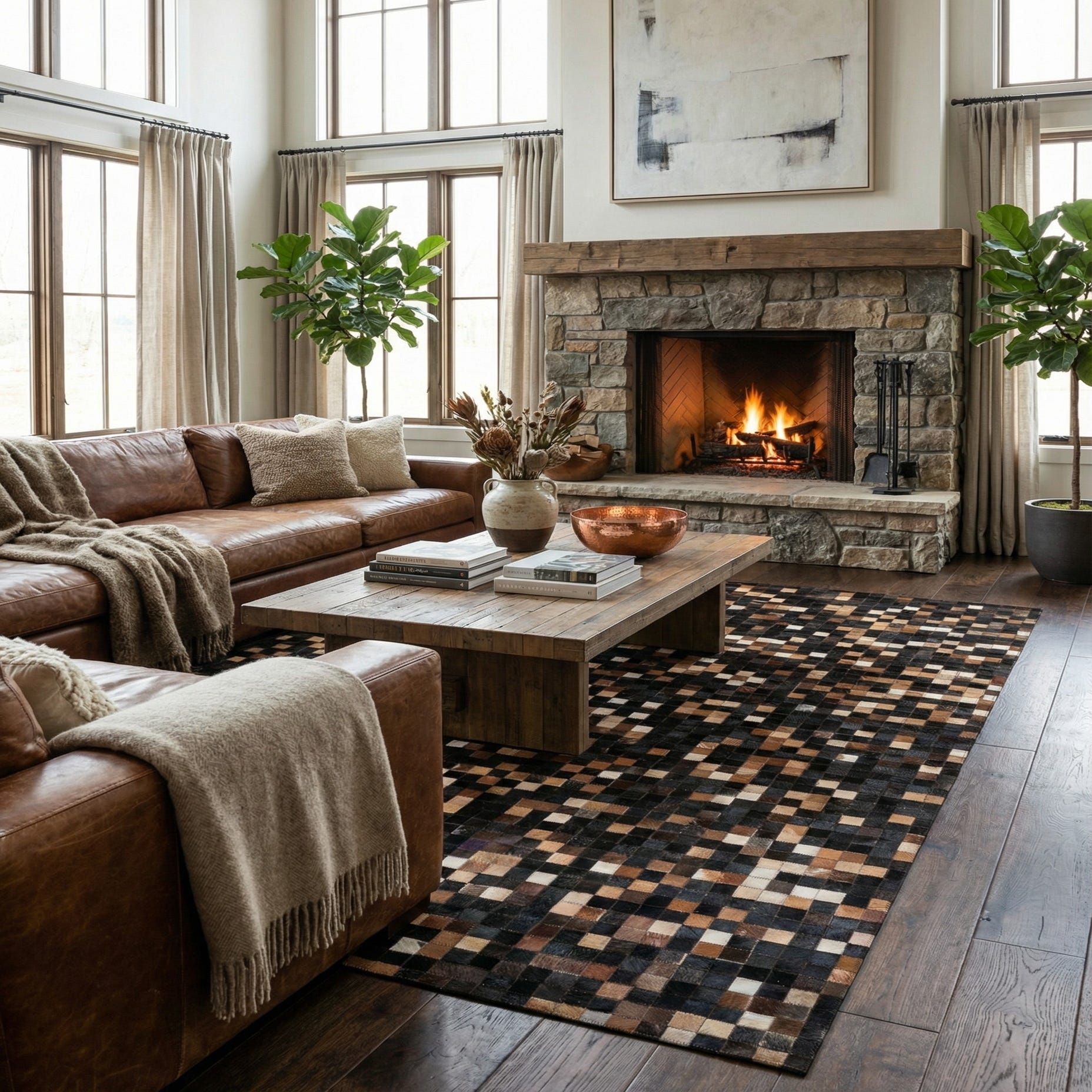 Primary color is Dark Brown. Colors in this rug include: Dark Brown, Beige, Black, Brown, Light Brown.
