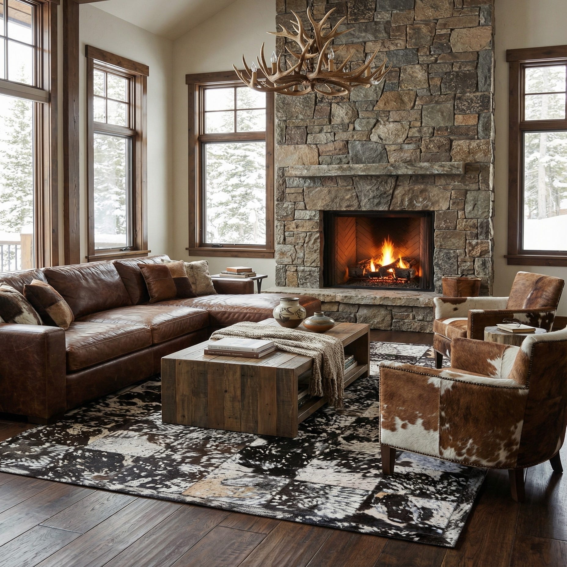 Detail image of 5' 2 x 8' Cowhide Stocks Rug
